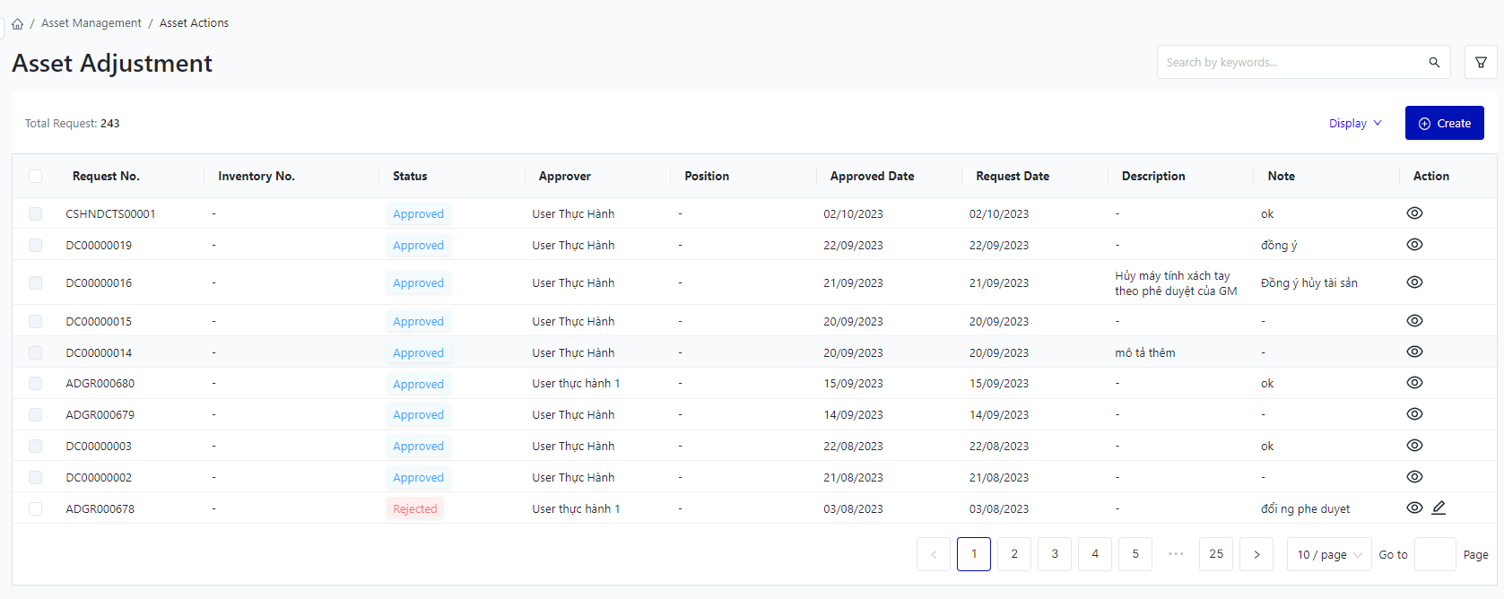 I. Filter and search asset adjustment![]()