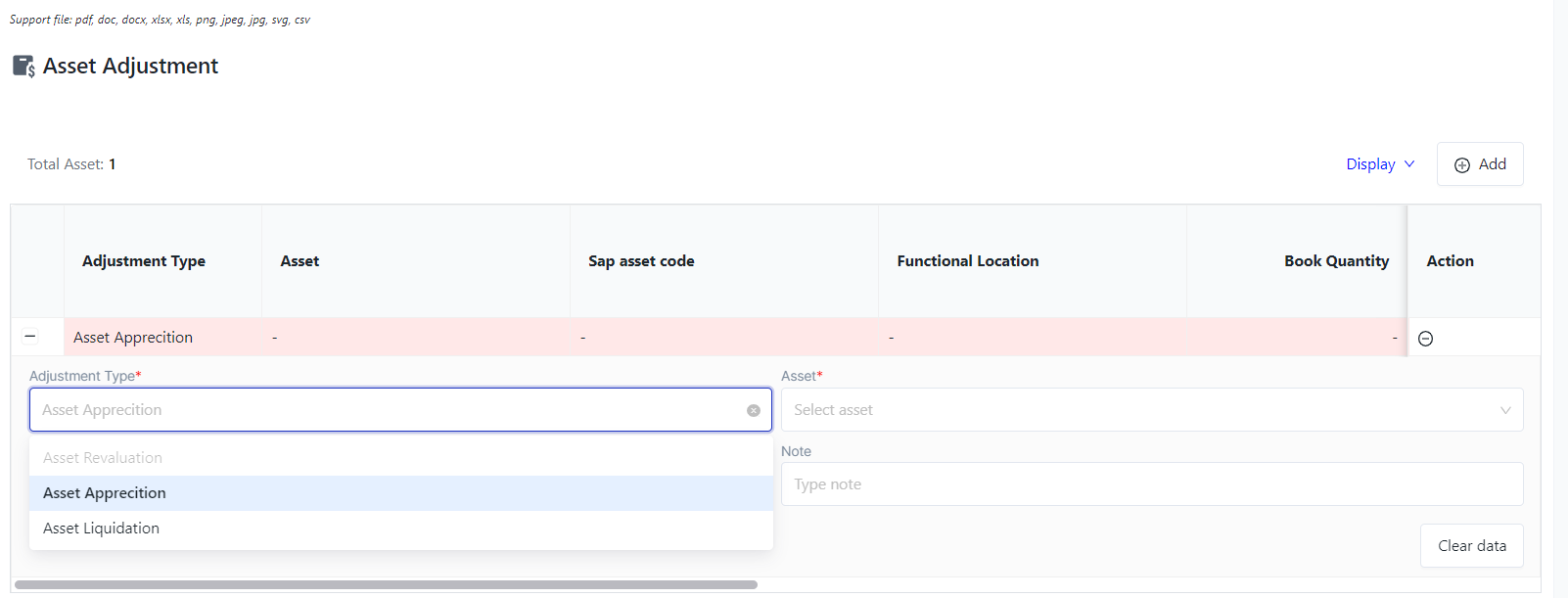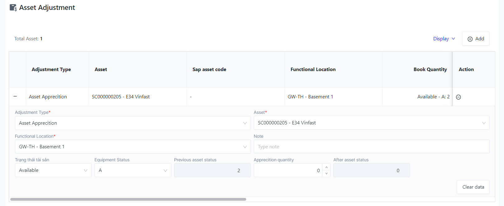 II. The fields for asset adjustment![]()