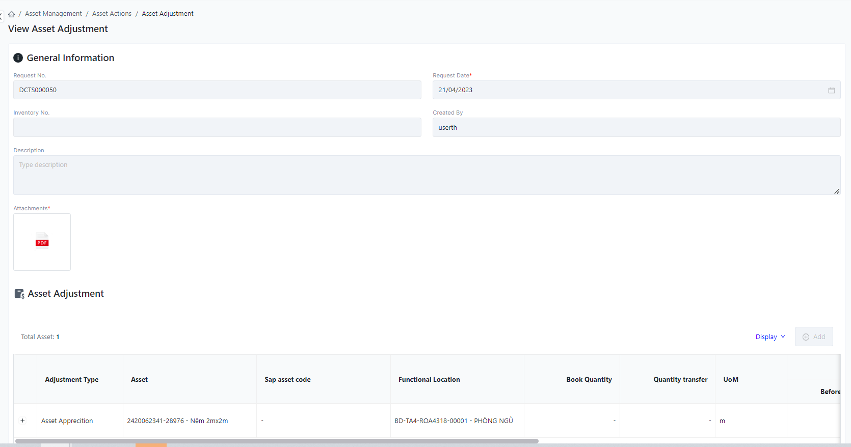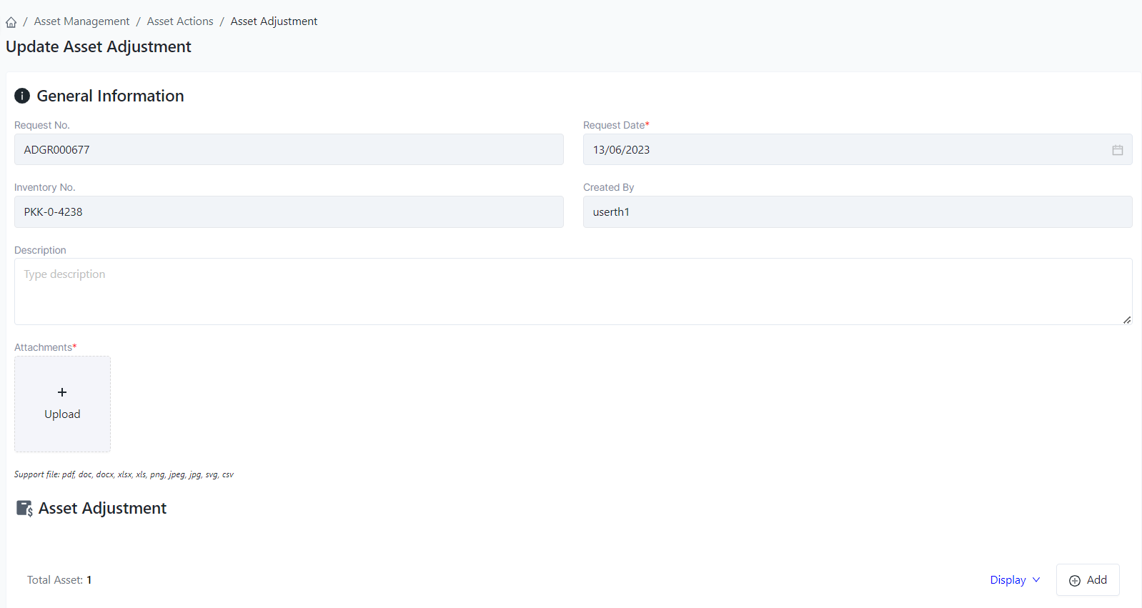 Login – Asset Management – Asset Adjustment |
