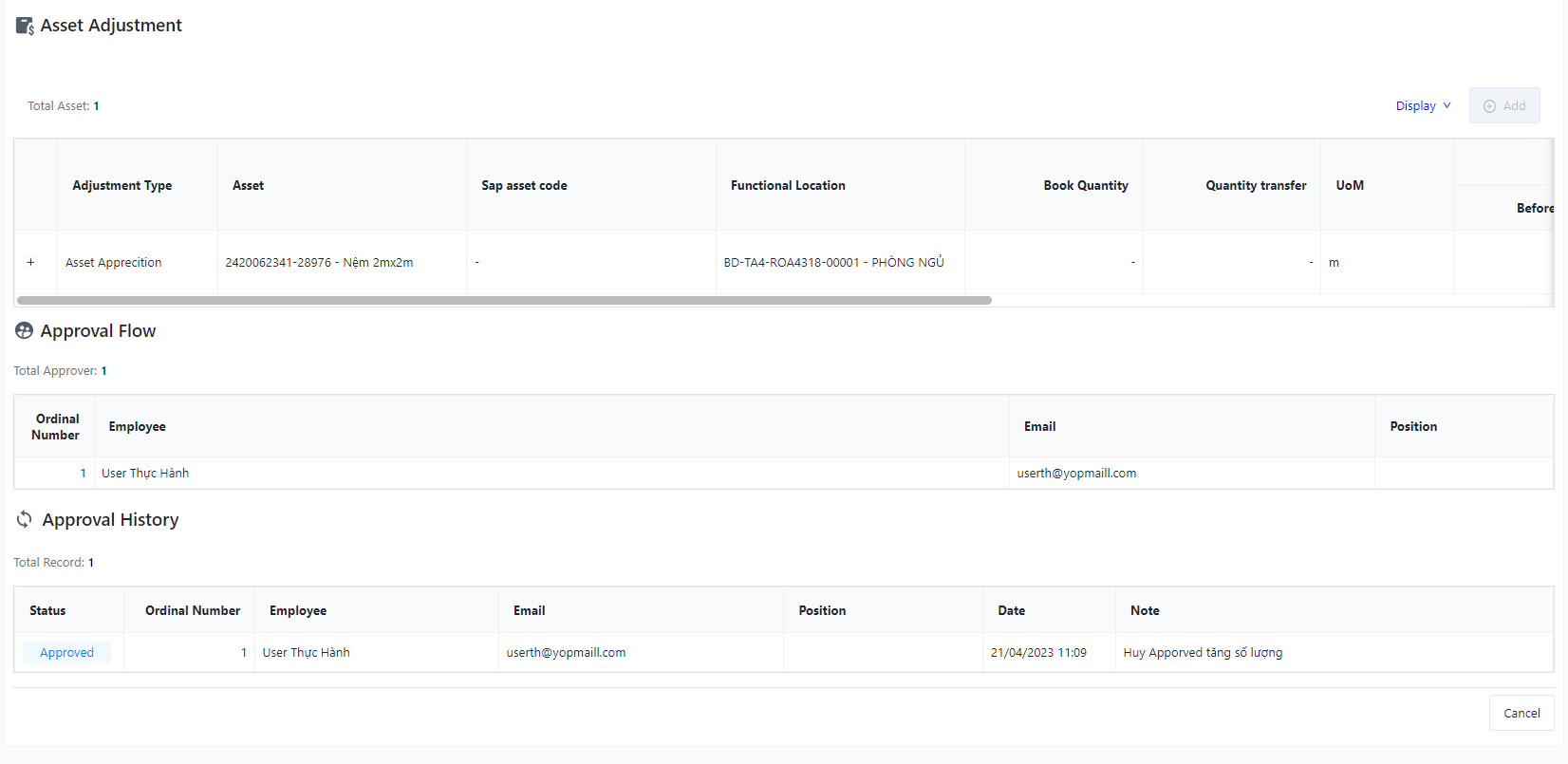 The screen manages the entire list of asset adjustment of the facility |