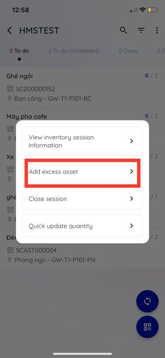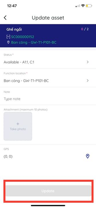 → After successfully updating the asset information, if the actual quantity matches the quantity on the system, the asset will be moved to the "Completed" section.