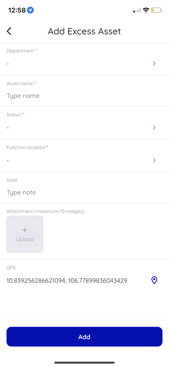 After successfully adding the excess asset, it will be displayed in the "Excess Asset List" section.
