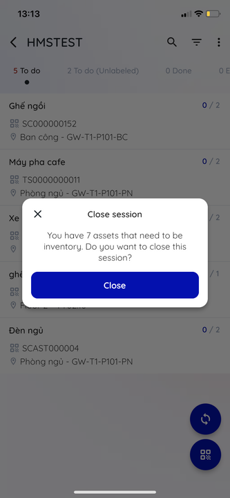 → On the window to close the inventory check session, there will be a reminder for the user that there are still assets that have not been checked to ensure that the user does not miss any assets during the inventory check.