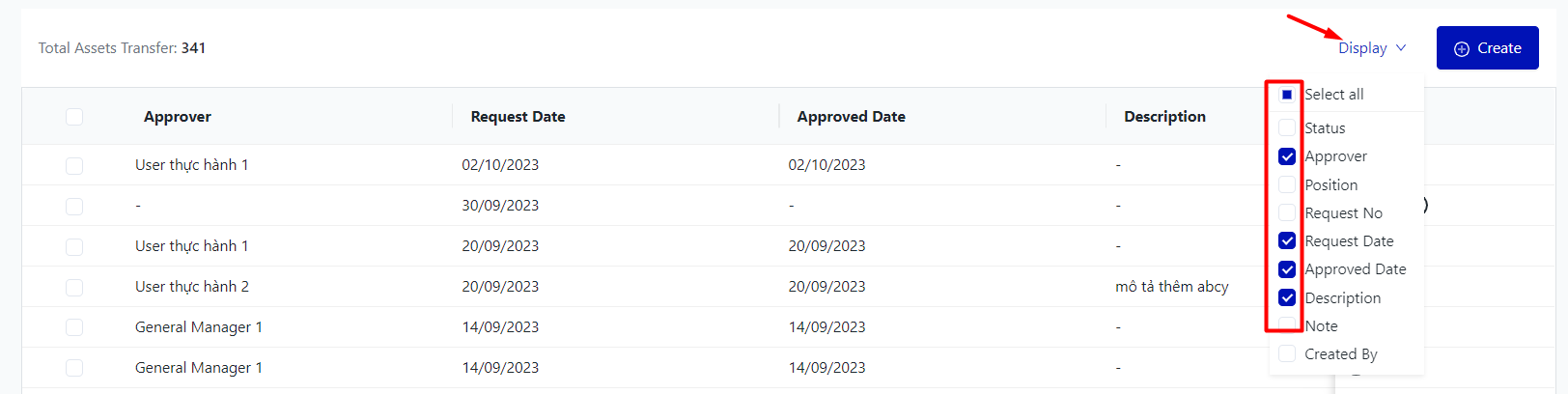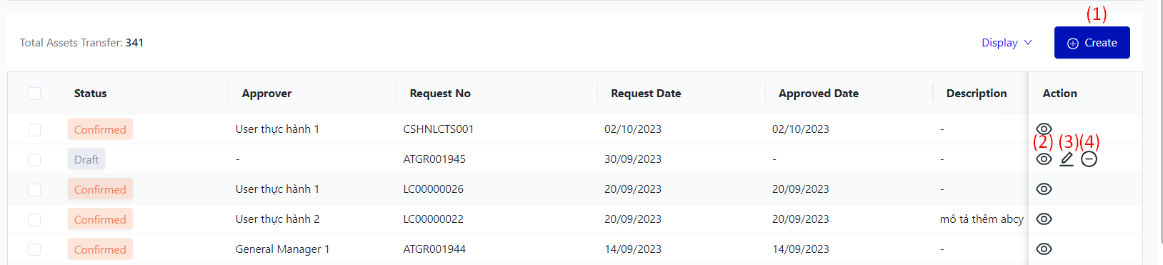 I. Filter and search asset transfer![]()