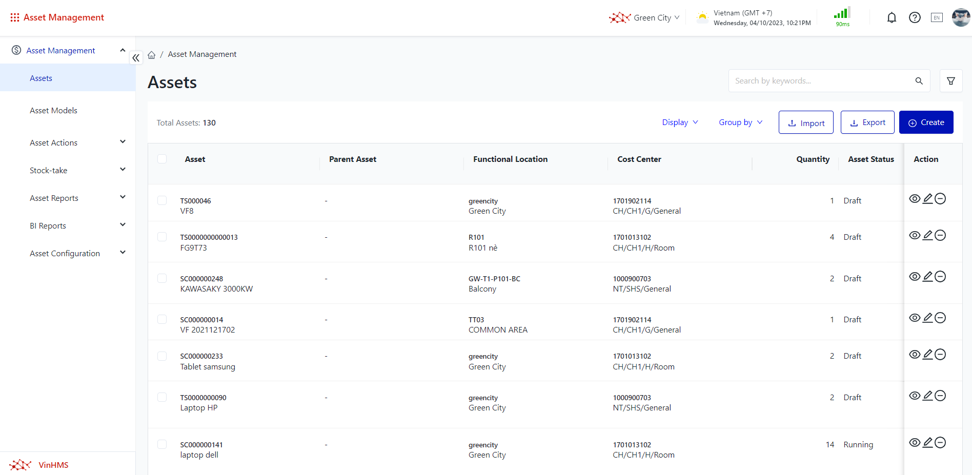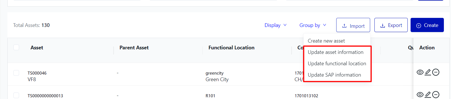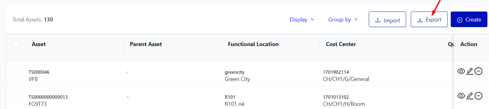 More Action: Select the assets will display “More Action” user can:
