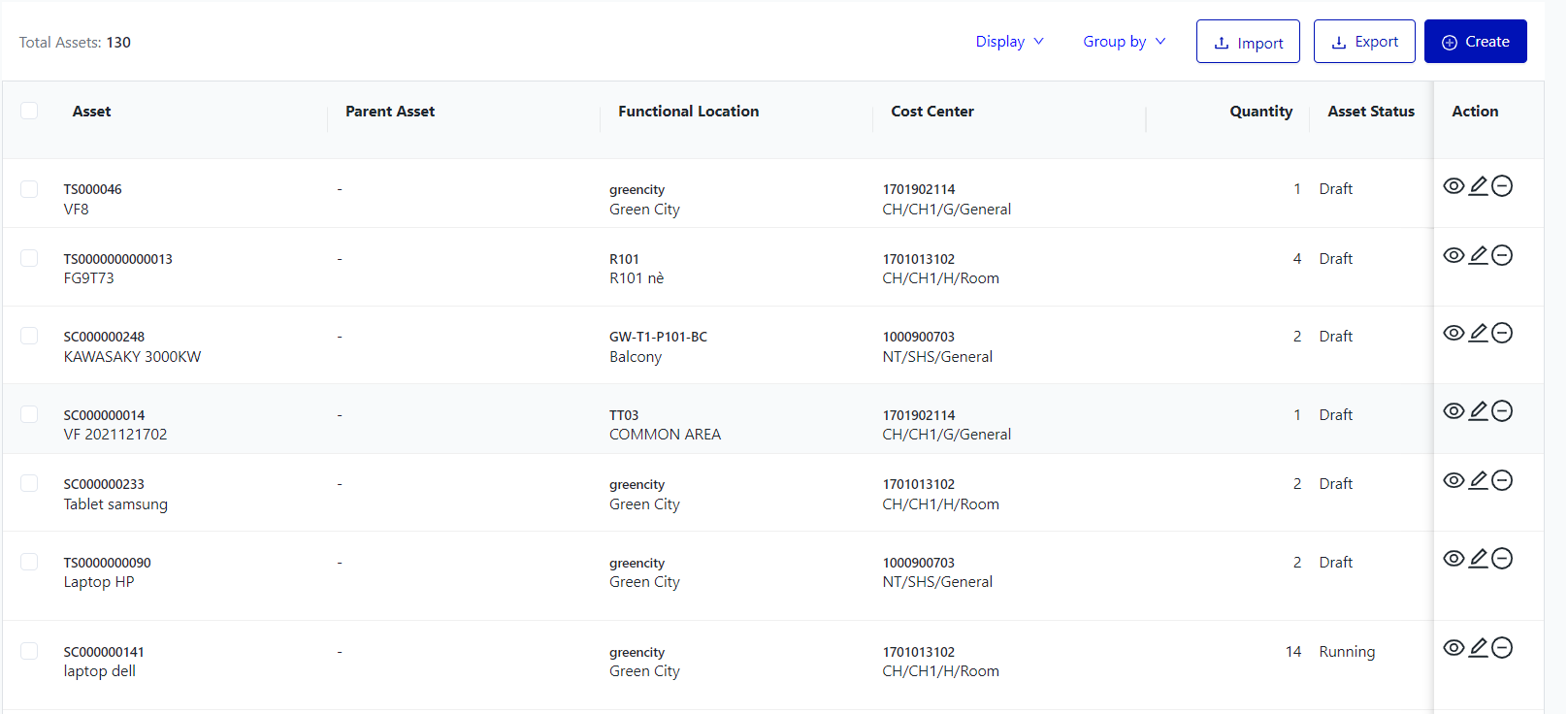The screen manages the entire list of asset information of the facility