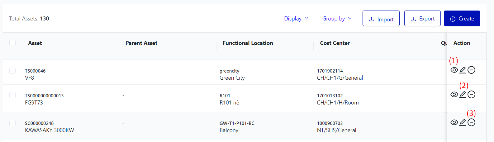 (1) View detail: To view detailed information about an asset