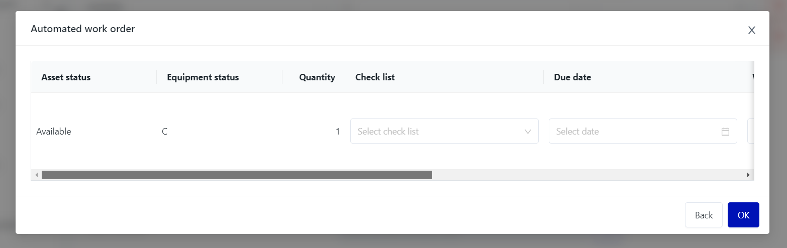 Users will fill in the following information: check list, Due date, work center, priority and image (if available). Then, they will select "OK" for the system to save the information.