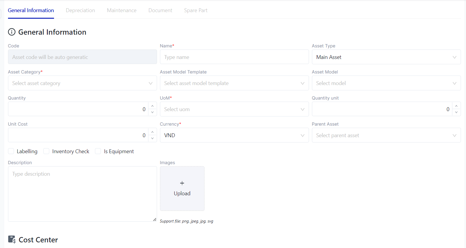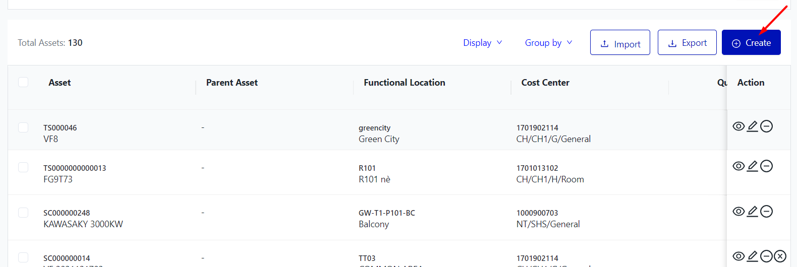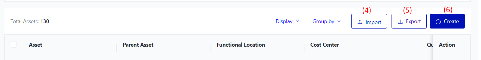 (6) Create: To create a new asset, follow these steps: