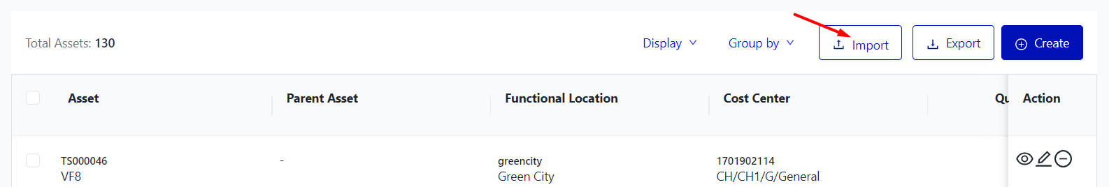 On the asset screen, select "Import".