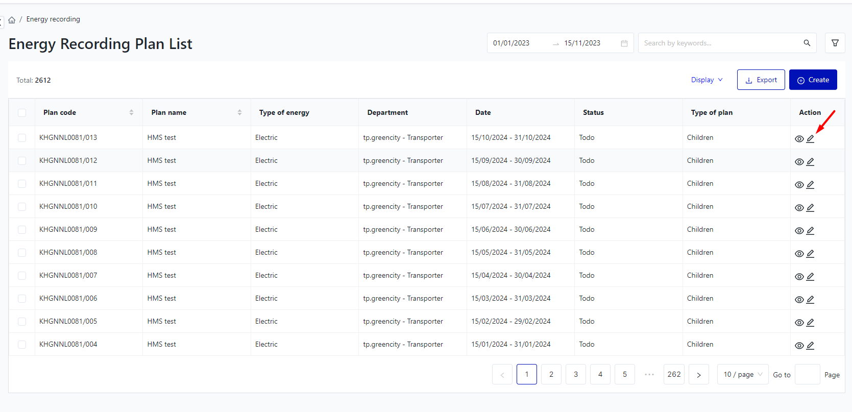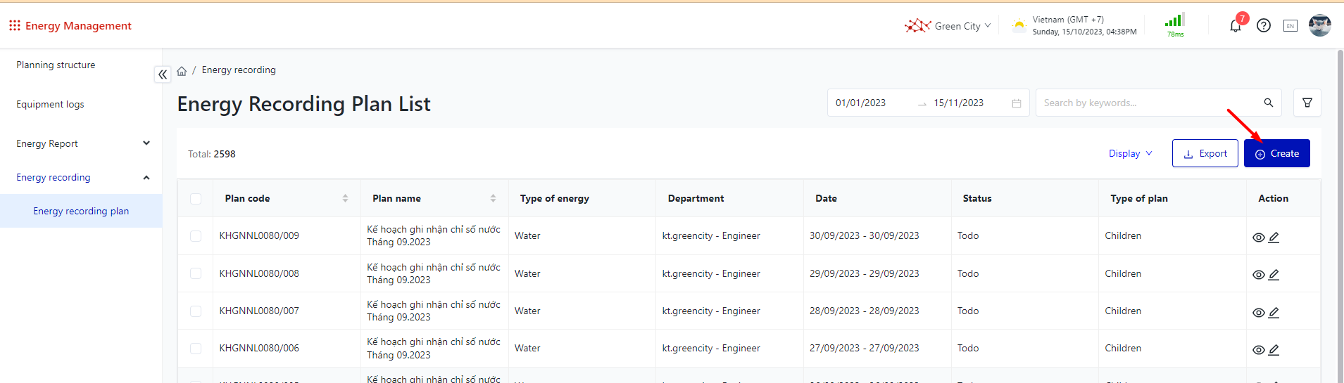 Login – Energy Management – Energy Recording – Energy Recording Plan |