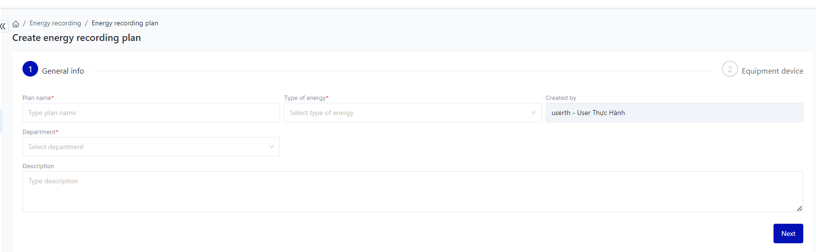 Step 1: Create a new Energy Recording Plan ![]() Step 2: Fill in the following information: