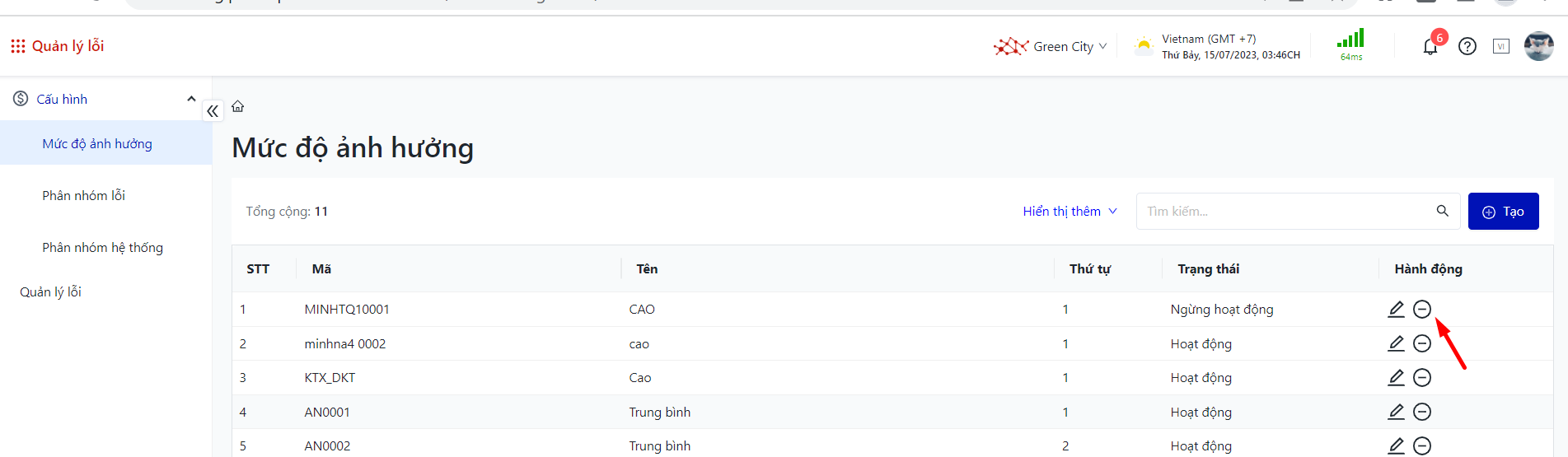 Login – Faul Management – Configuration – Fault level |