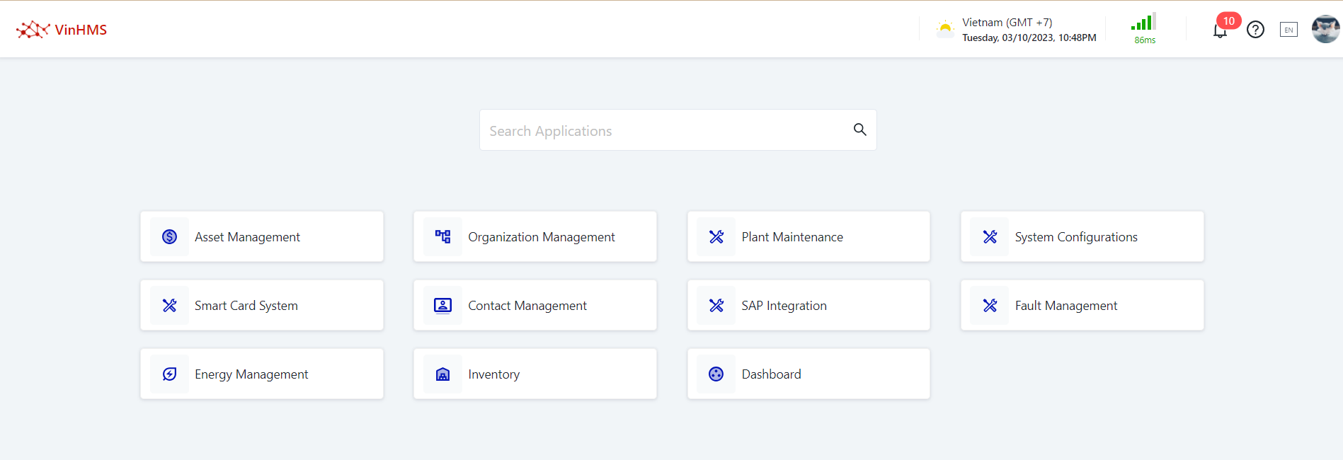 After successfully authenticating the account, the system will redirect to the summary page of the functional subsystems for users to use.