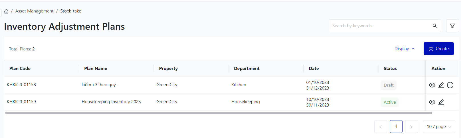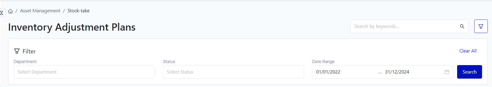 I. Filter and search Inventory Adjustment Plans![]()