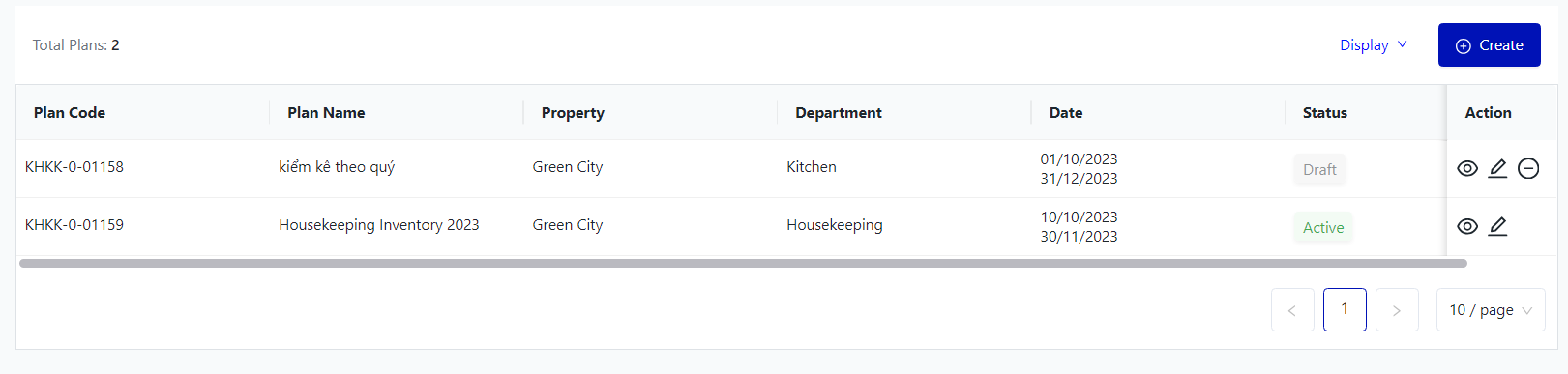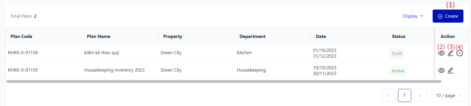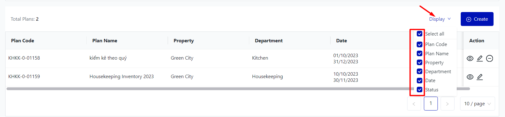 II. The fields for Inventory Adjustment Plans![]() Click on "Display" to tick the fields of information that the user wants to show ![]() III. The main functions![]()