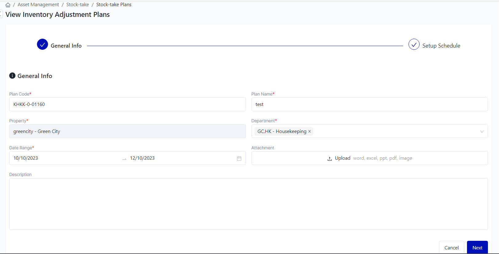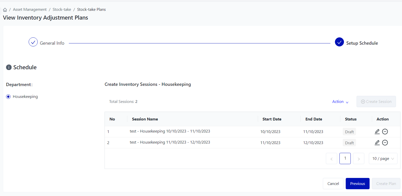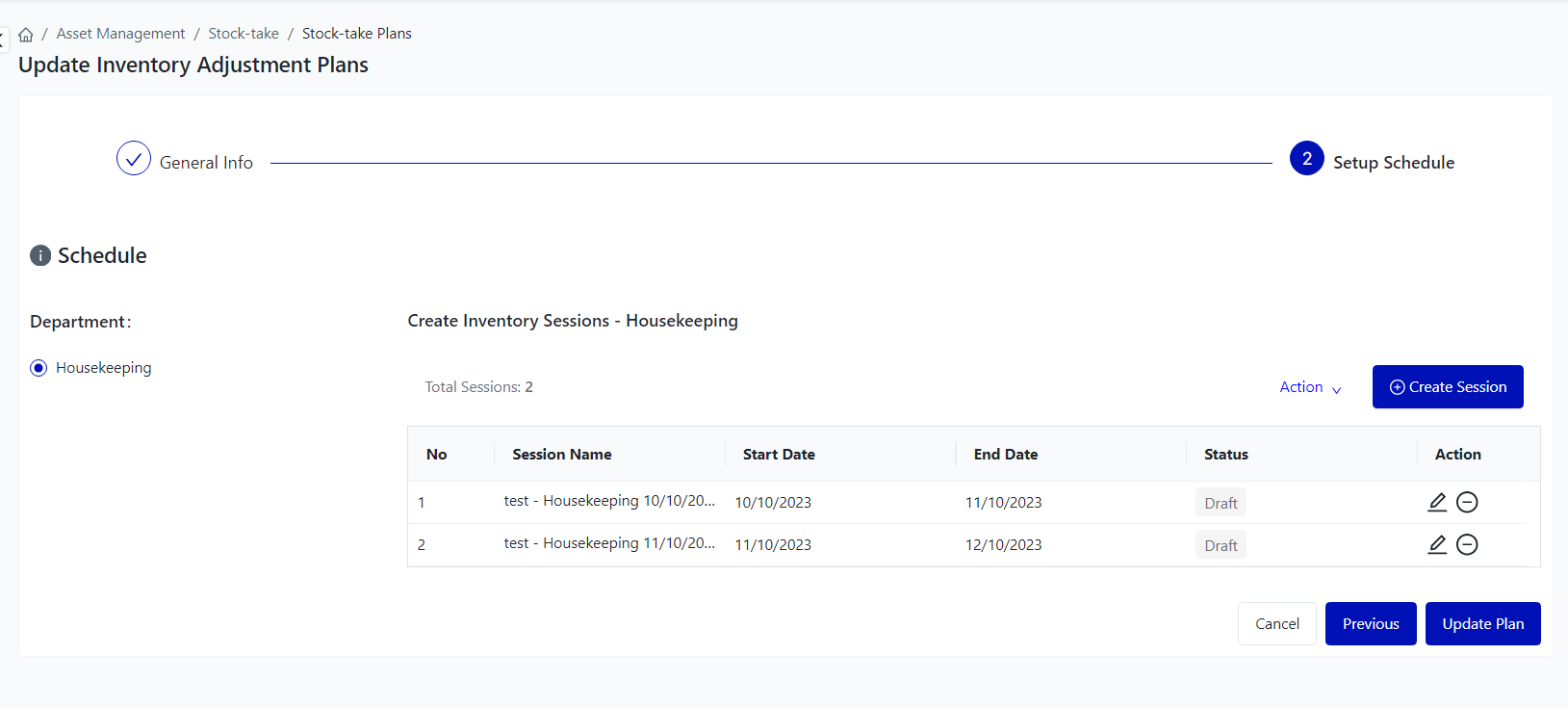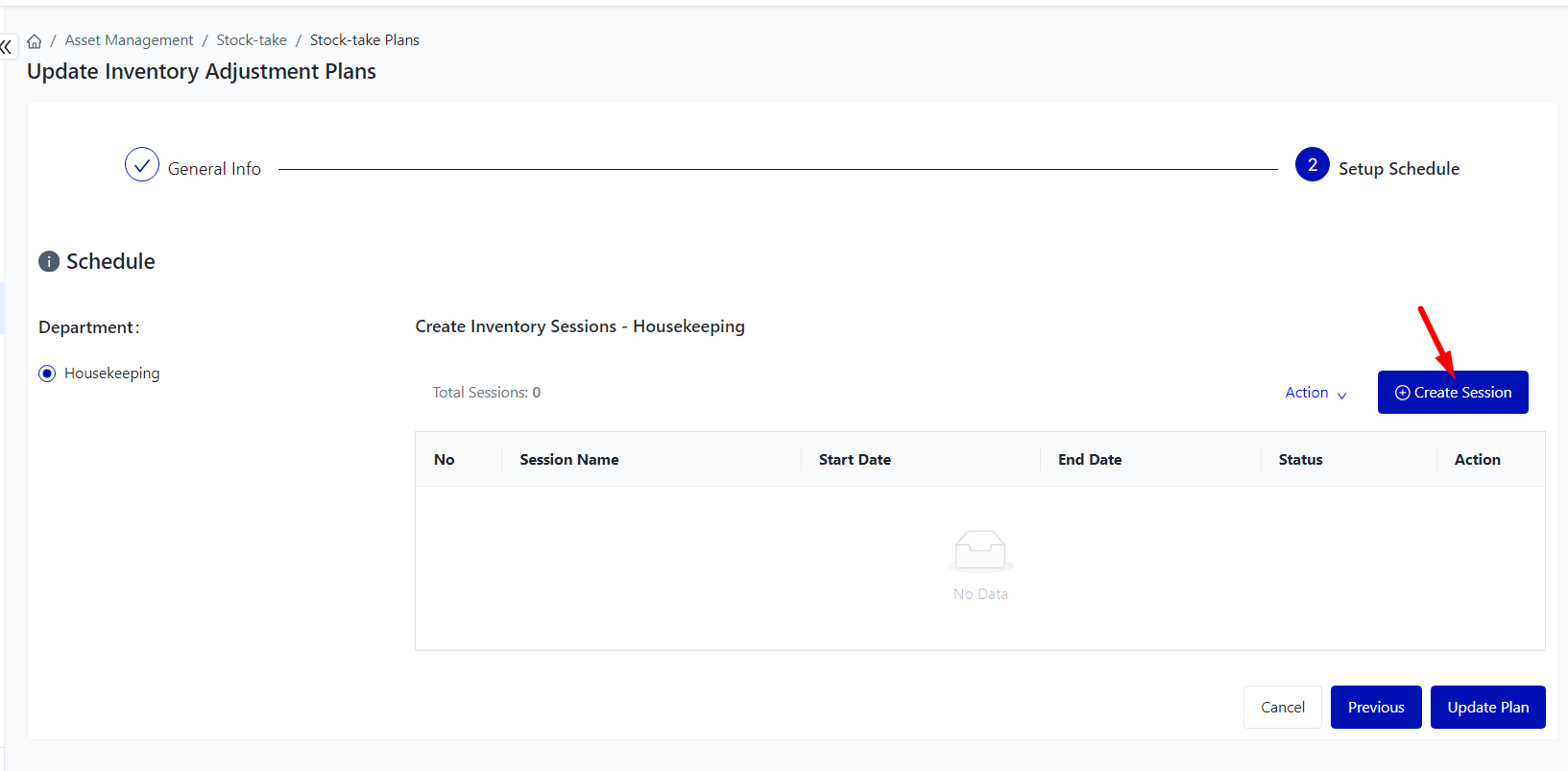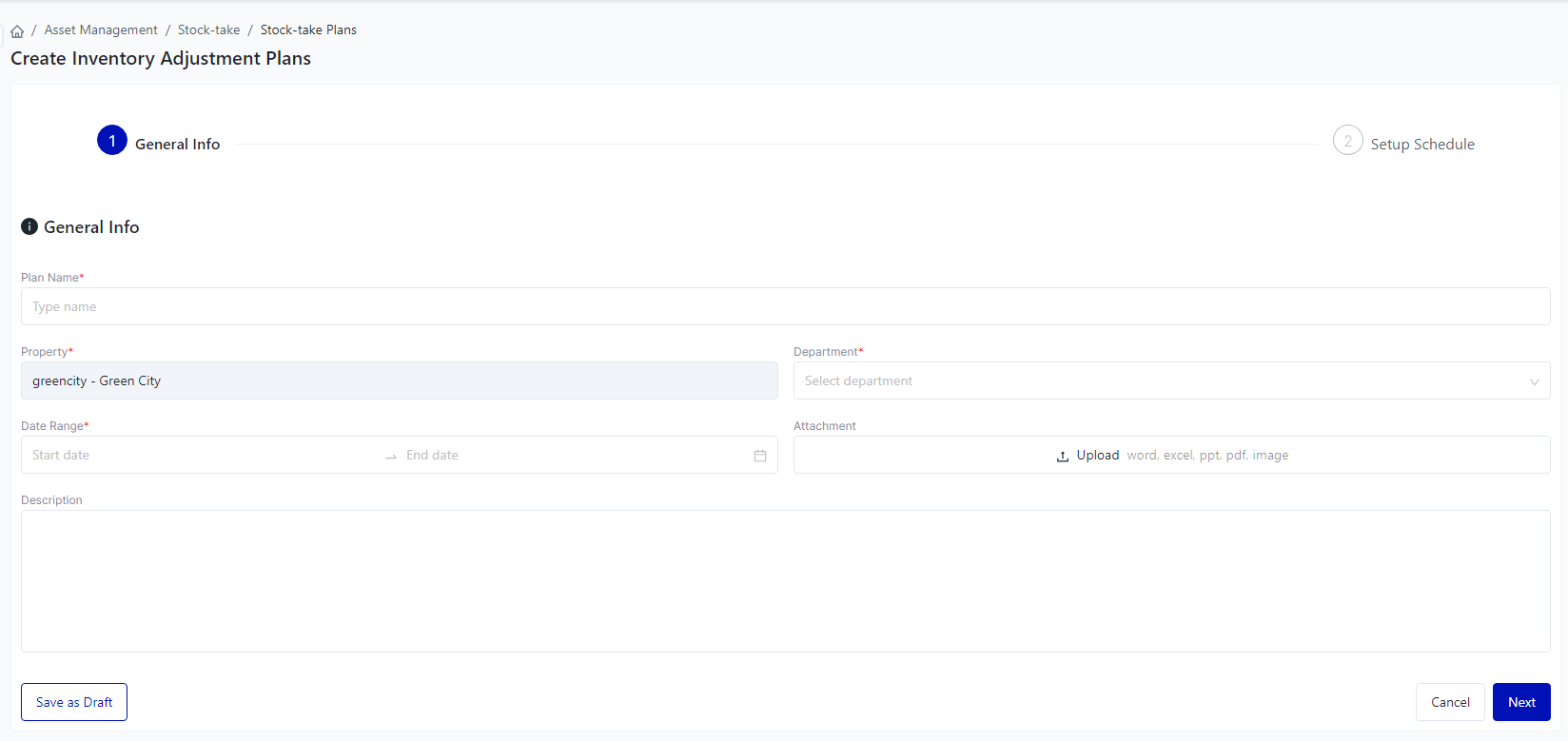 Login – Asset Management – Stock-take – Inventory Adjustment Plans |