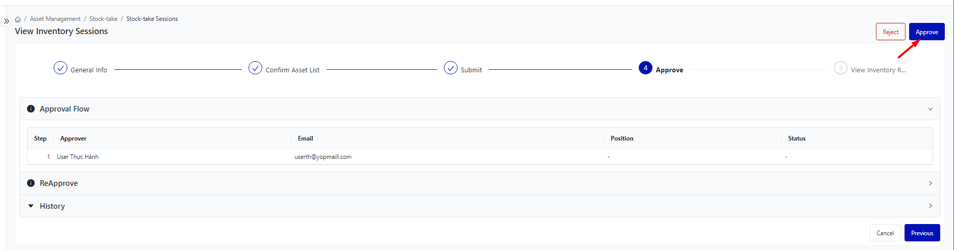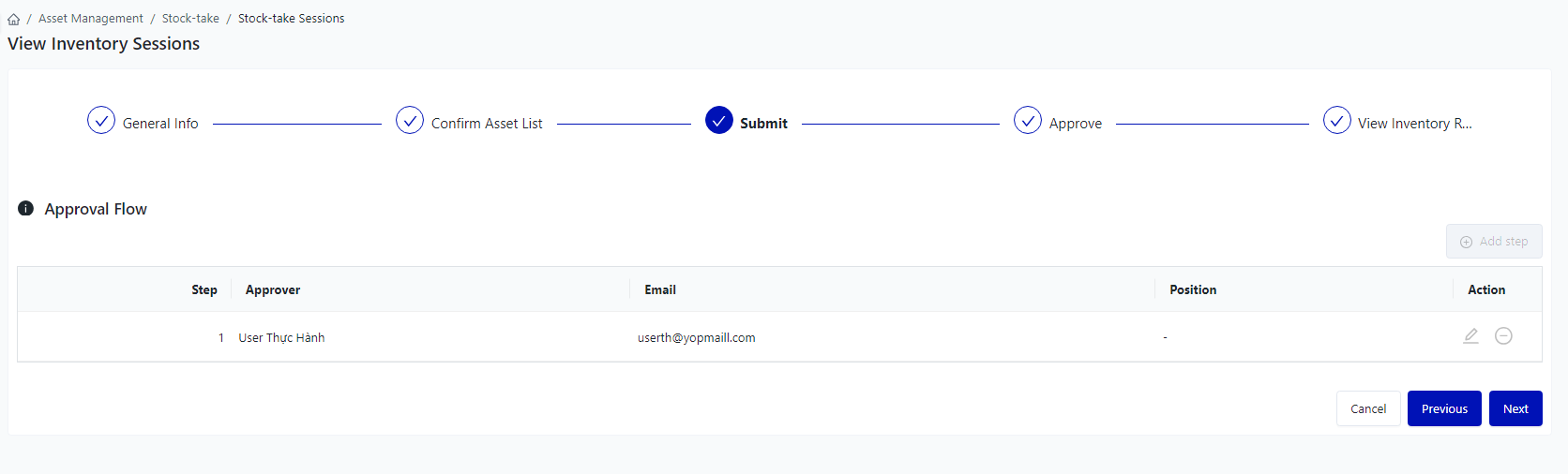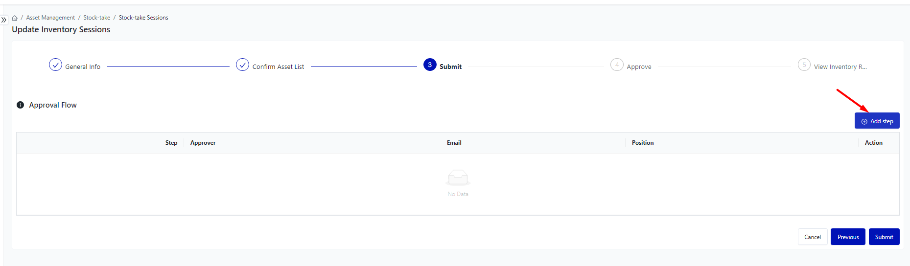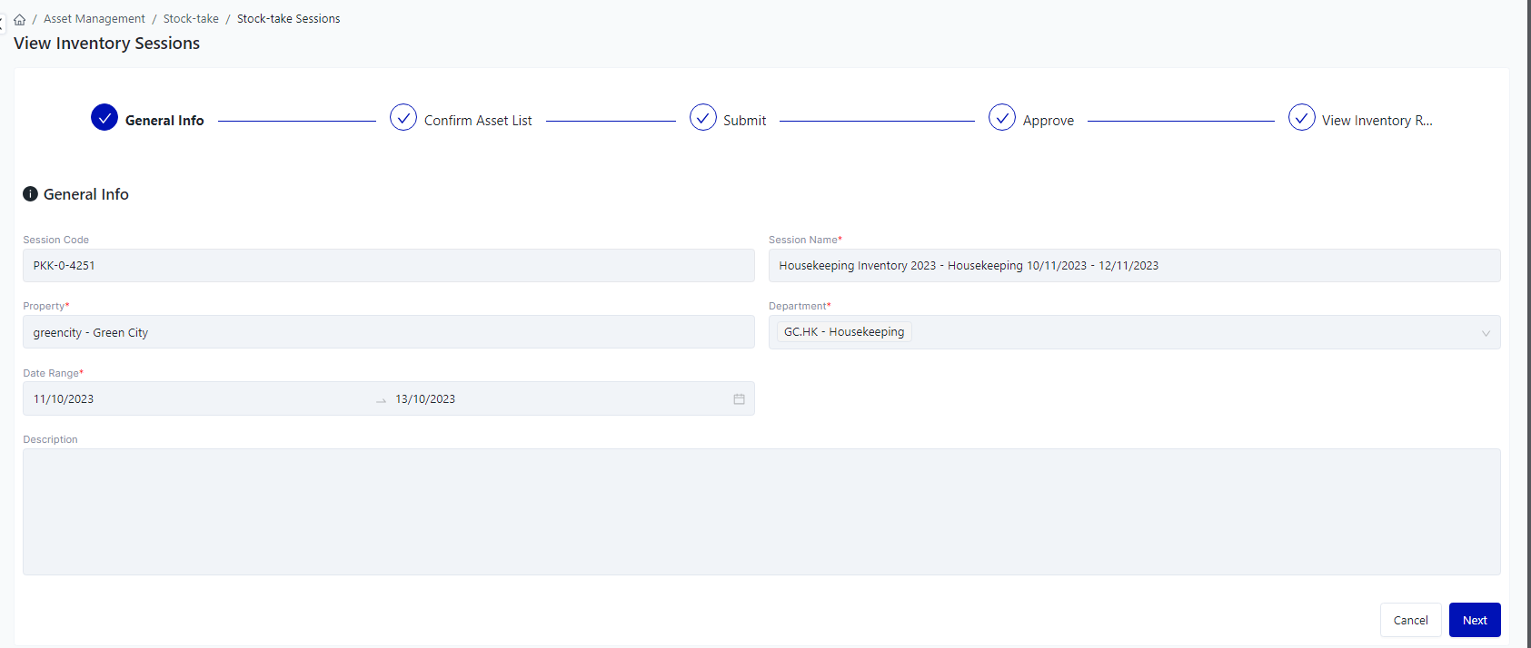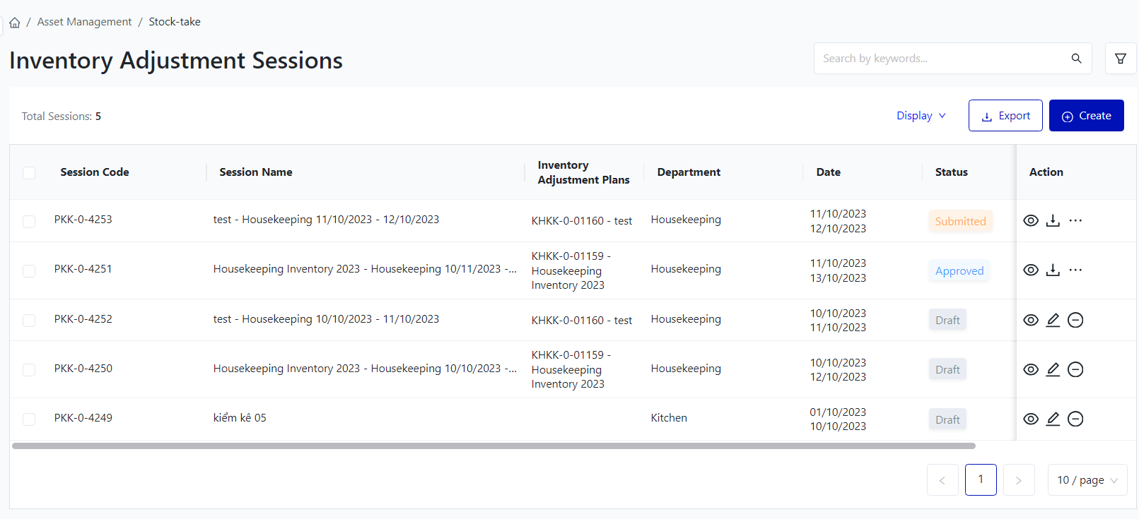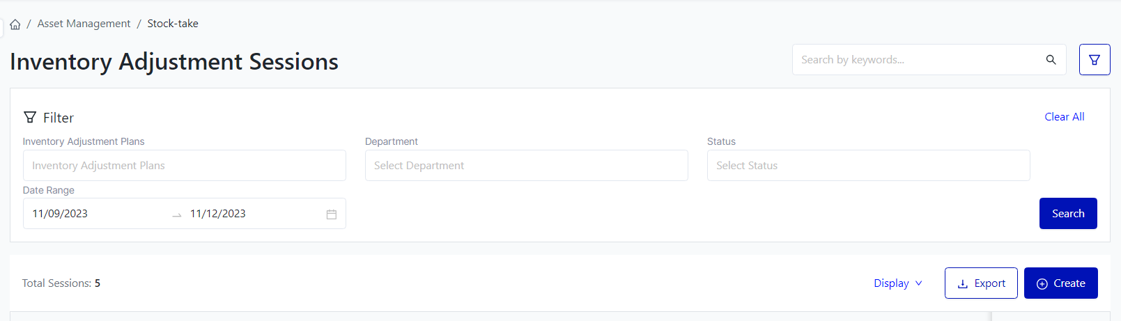 Login – Asset Management – Stock-take – Inventory Adjustment Sessions |
