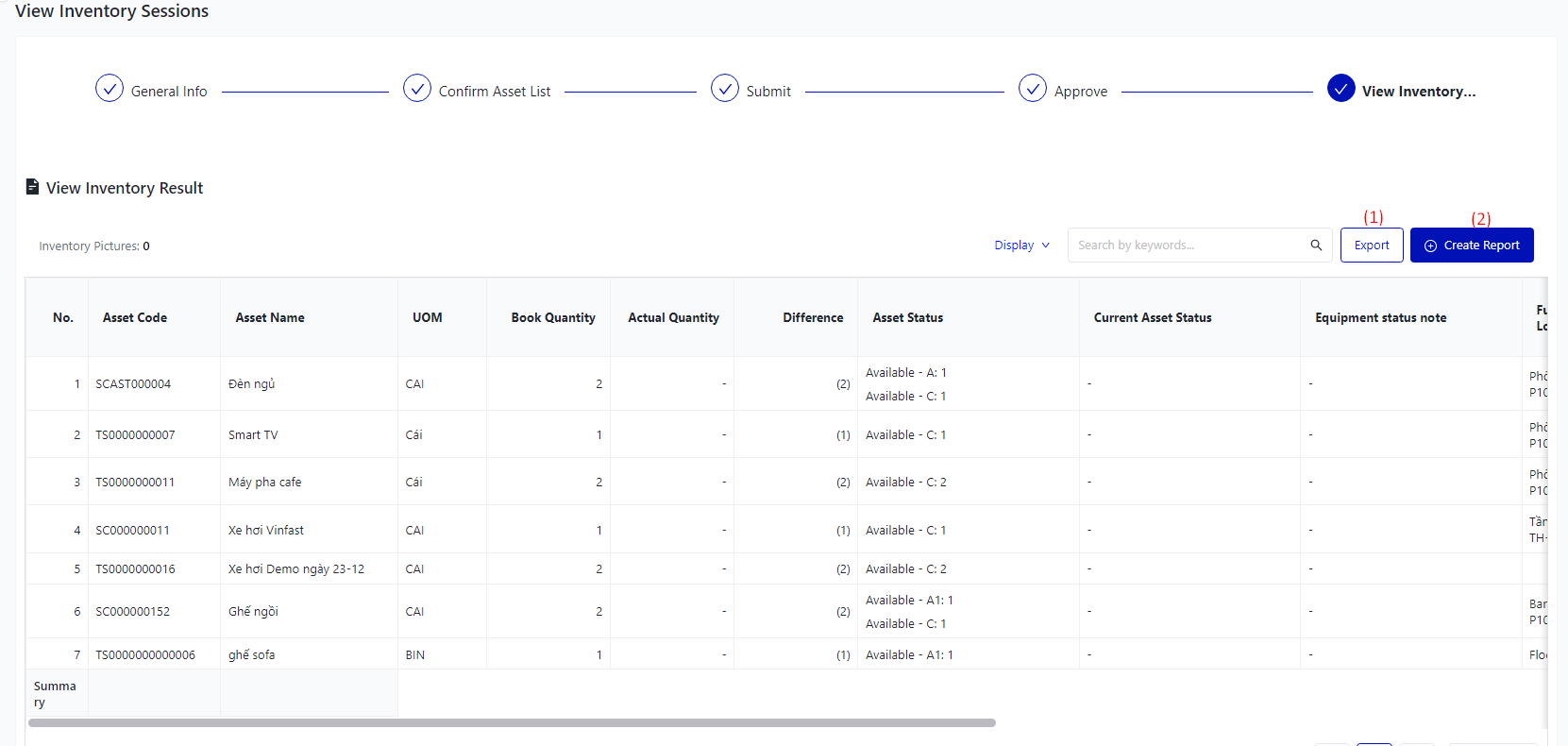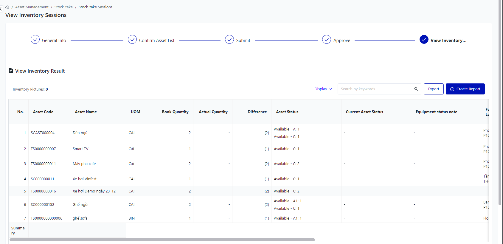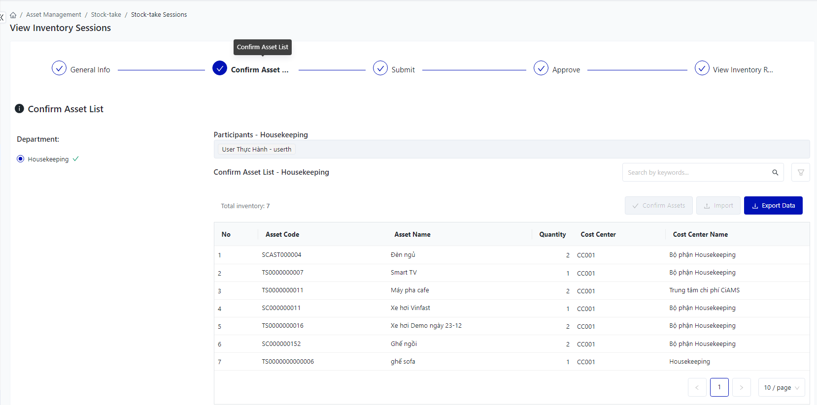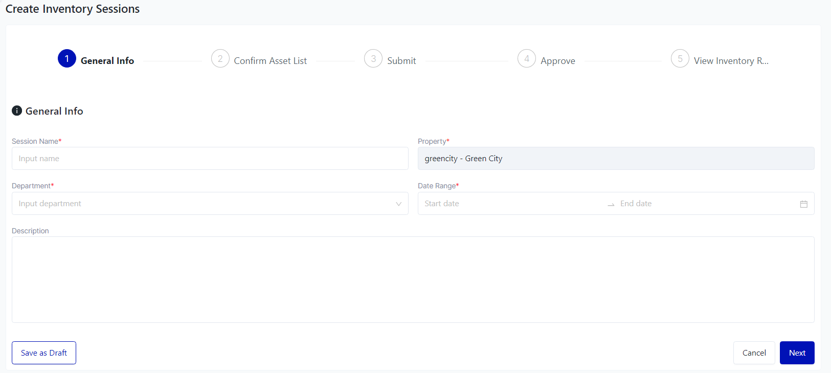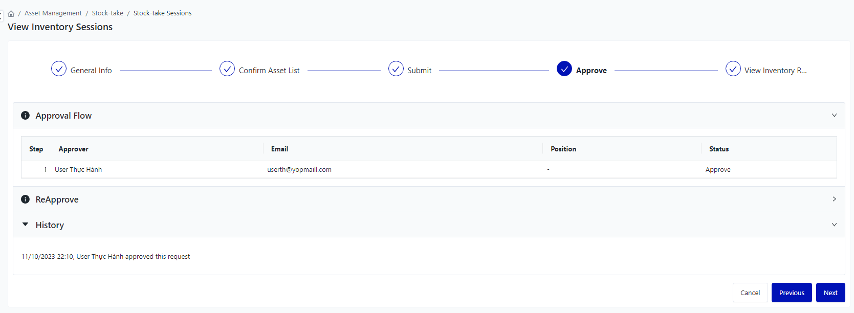 Login – Asset Management – Stock-take – Inventory Adjustment Sessions |
