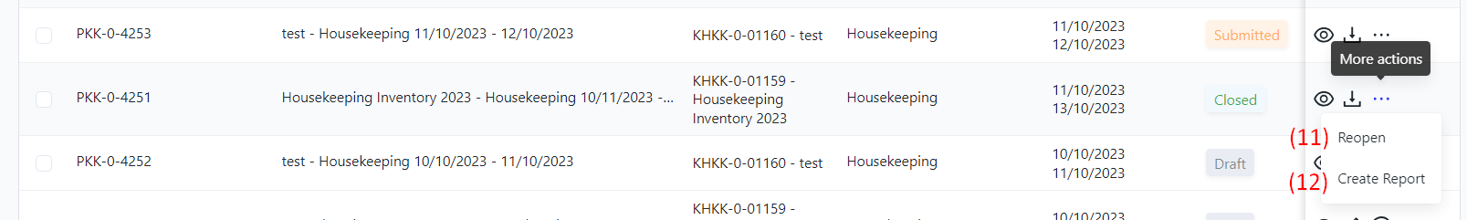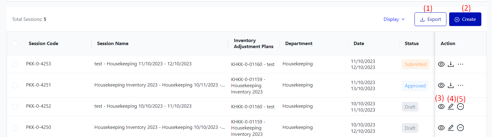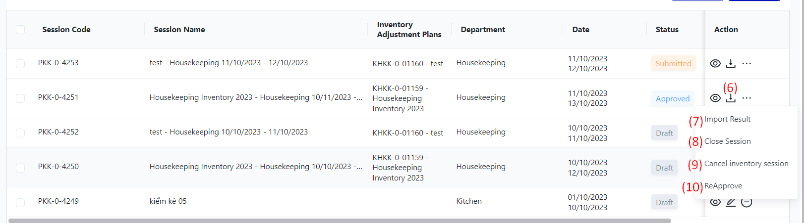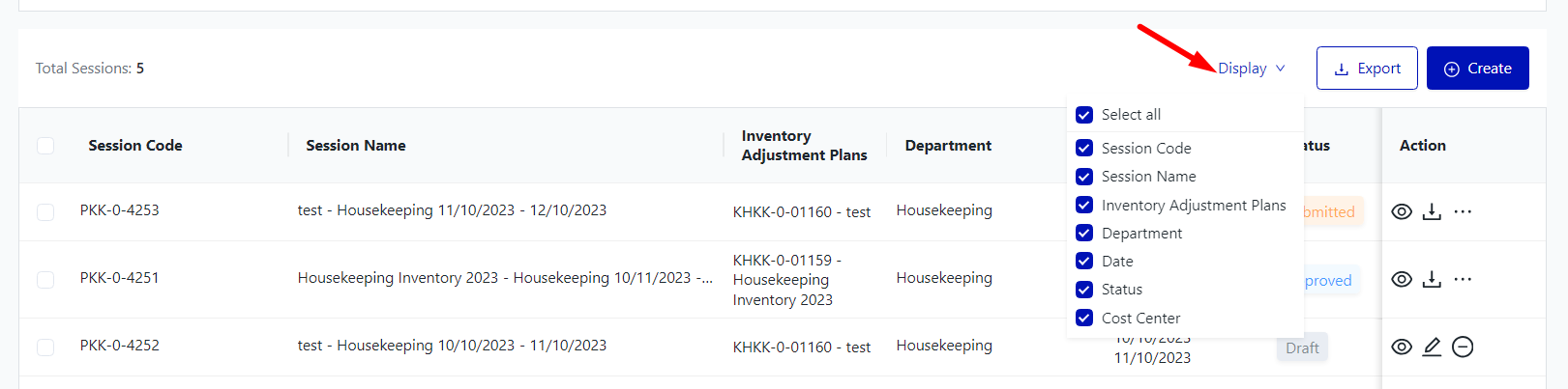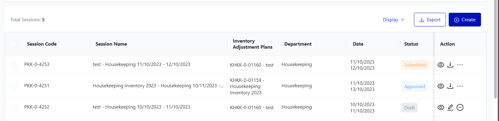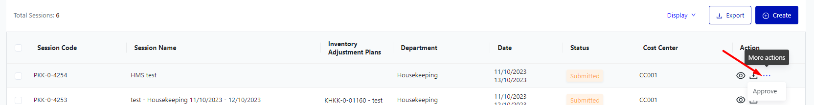 I. Filter and search Inventory Adjustment Sessions![]()