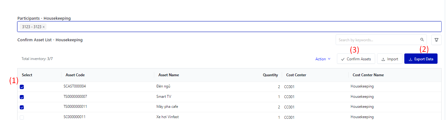 II. The fields for Inventory Adjustment sessions![]() Click on "Display" to tick the fields of information that the user wants to show ![]() III. The main functions![]() ![]() ![]()