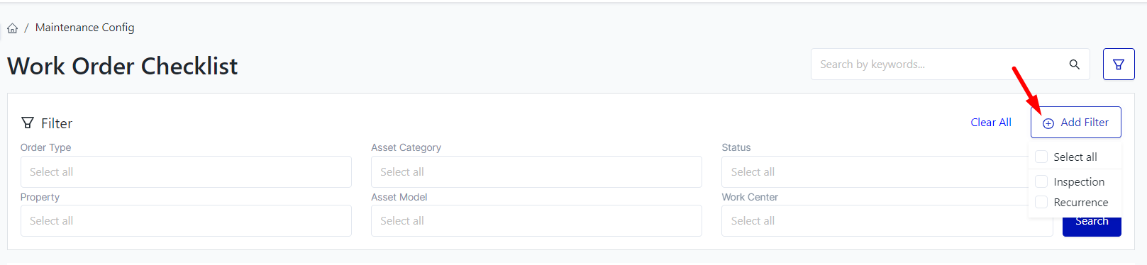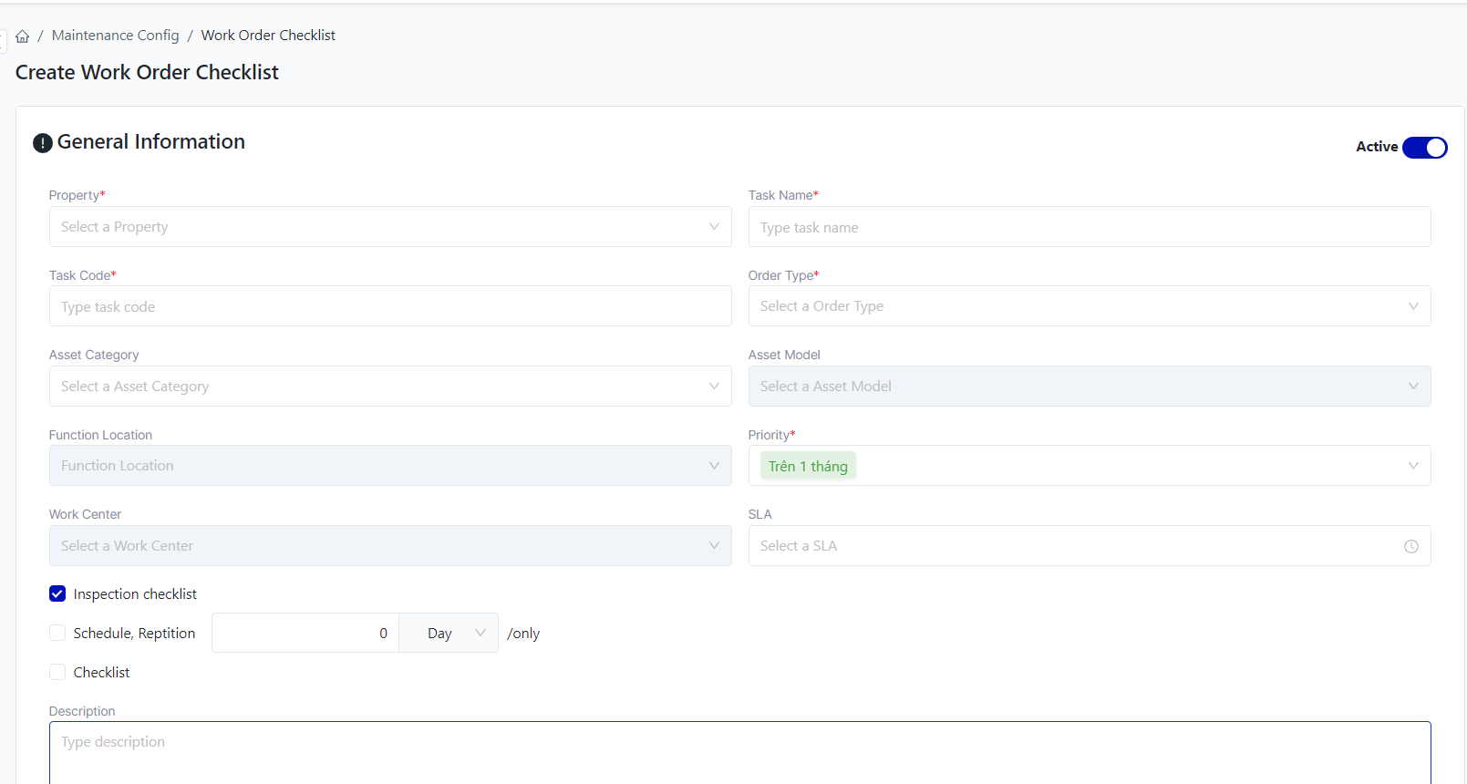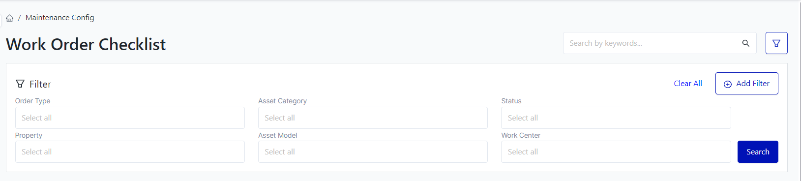 Login - Plant Maintenance - Maintenance Config - Work Order Checklist |