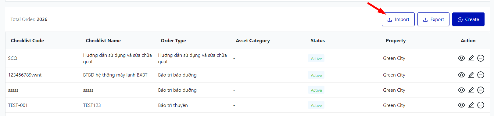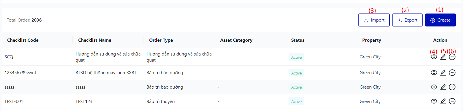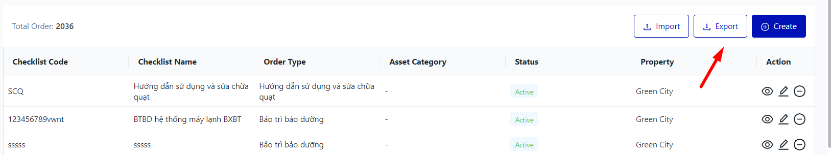 The screen displays the entire list of Work Order Checklist. |