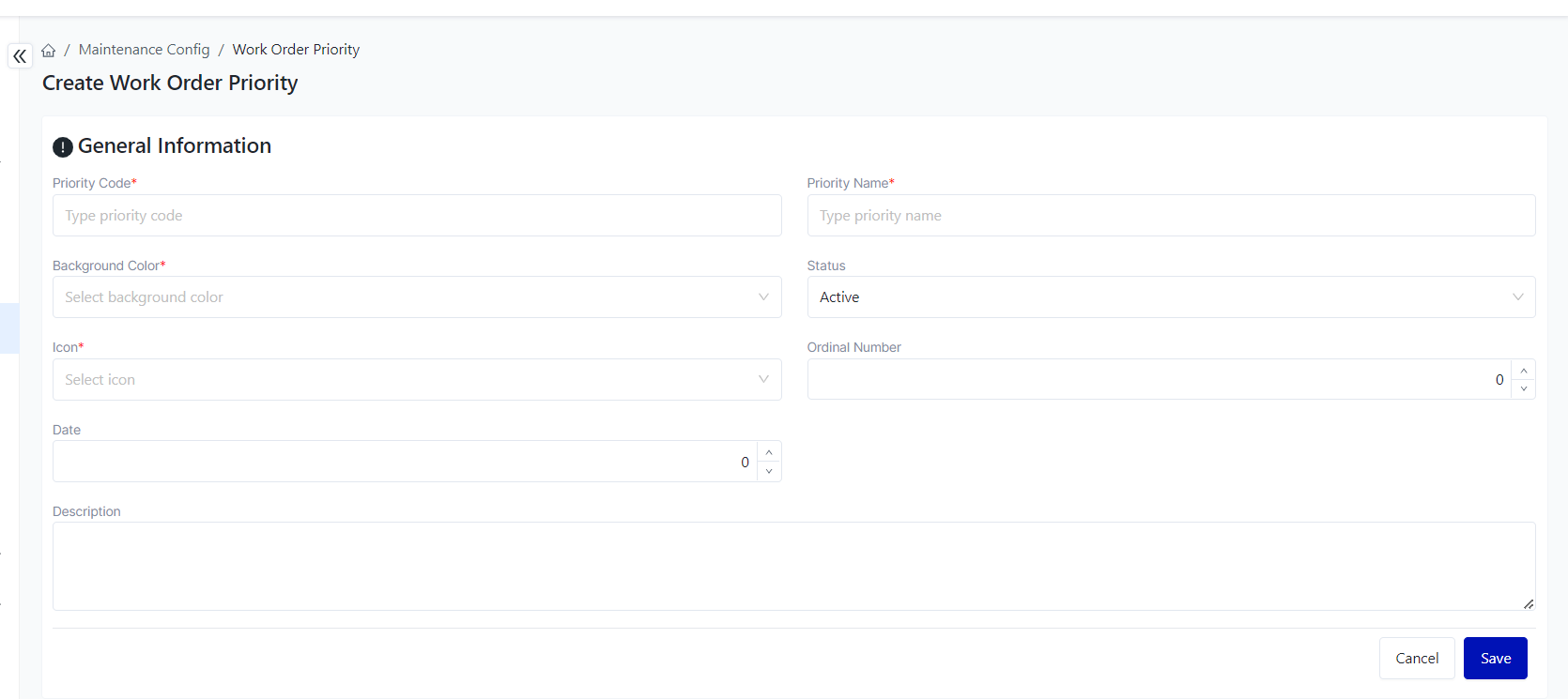 Login - Plant Maintenance - Maintenance Config - Work Order Priority |