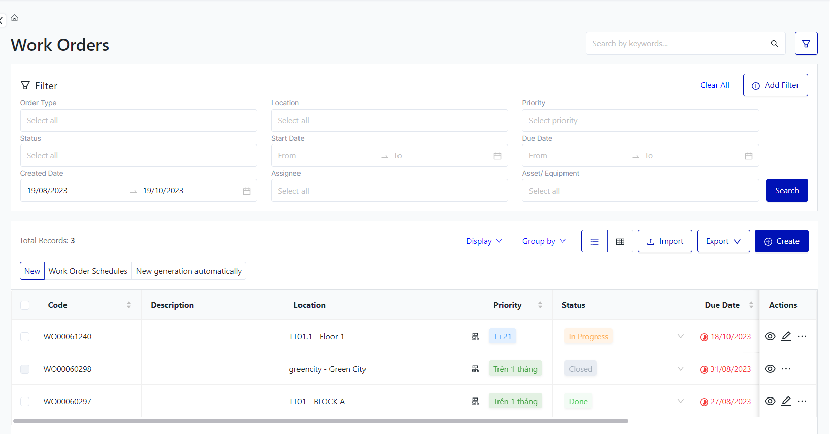 Select the three-dot icon to download the list of assets that need to be repaired. From this list, users can know which assets need to create work orders to perform repairs.
