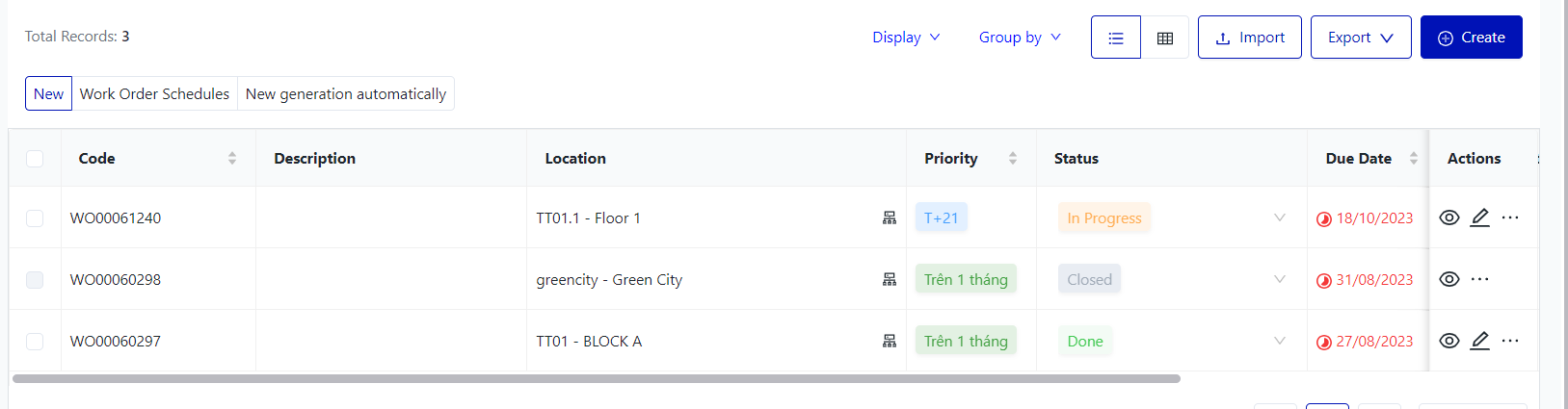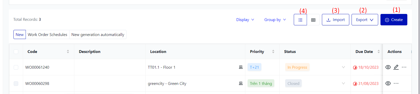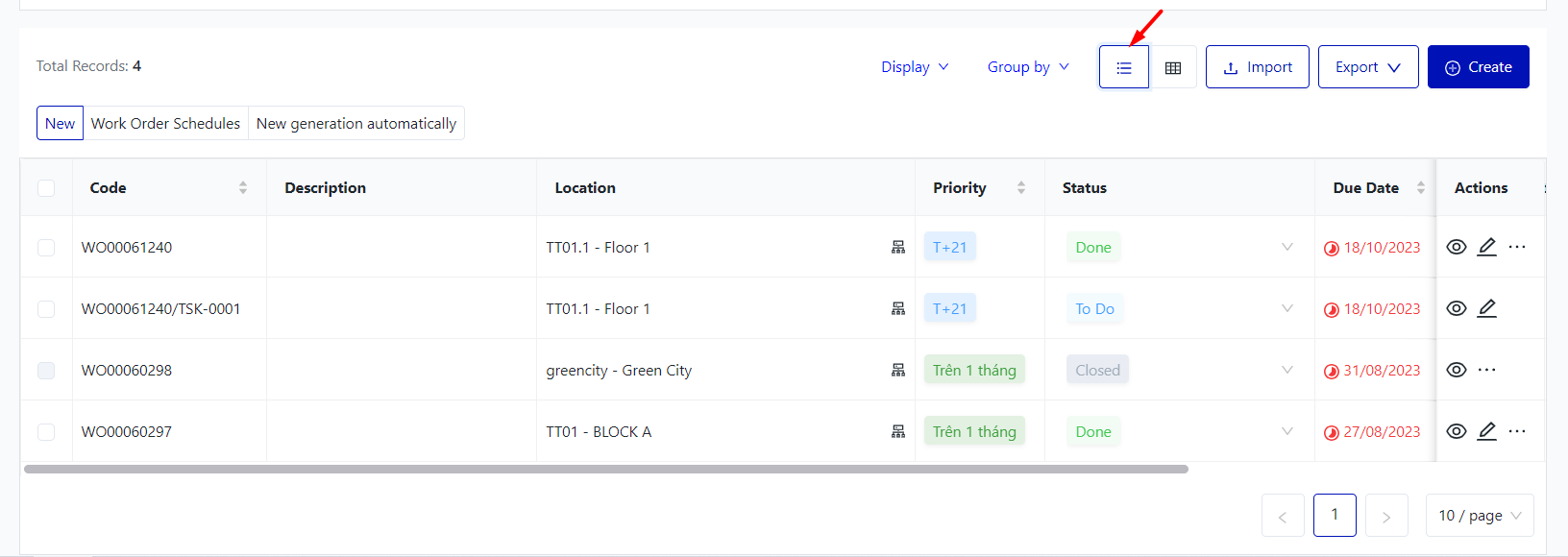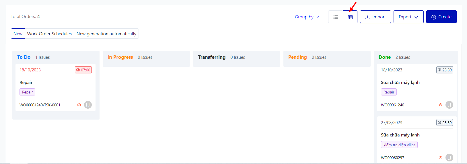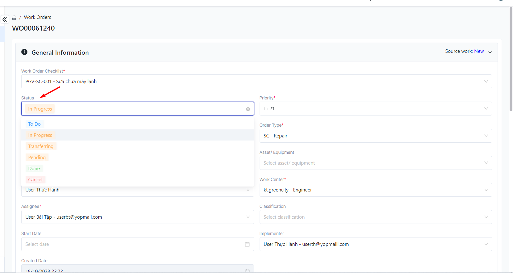 How to edit and update the work order status: After successfully creating a new work order, users can click on the icon 📝
