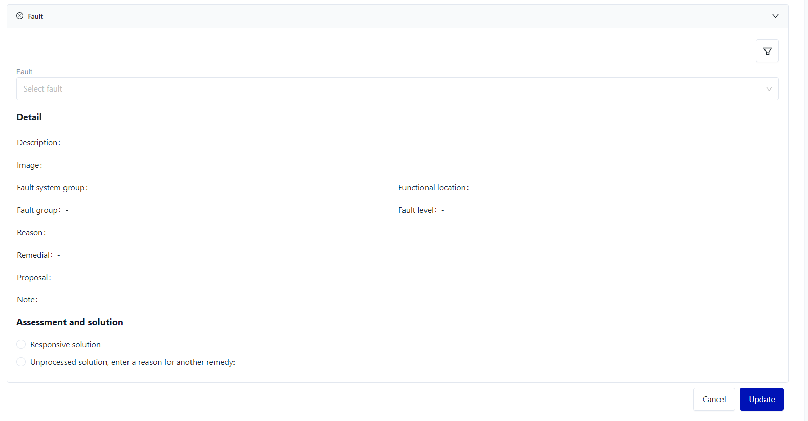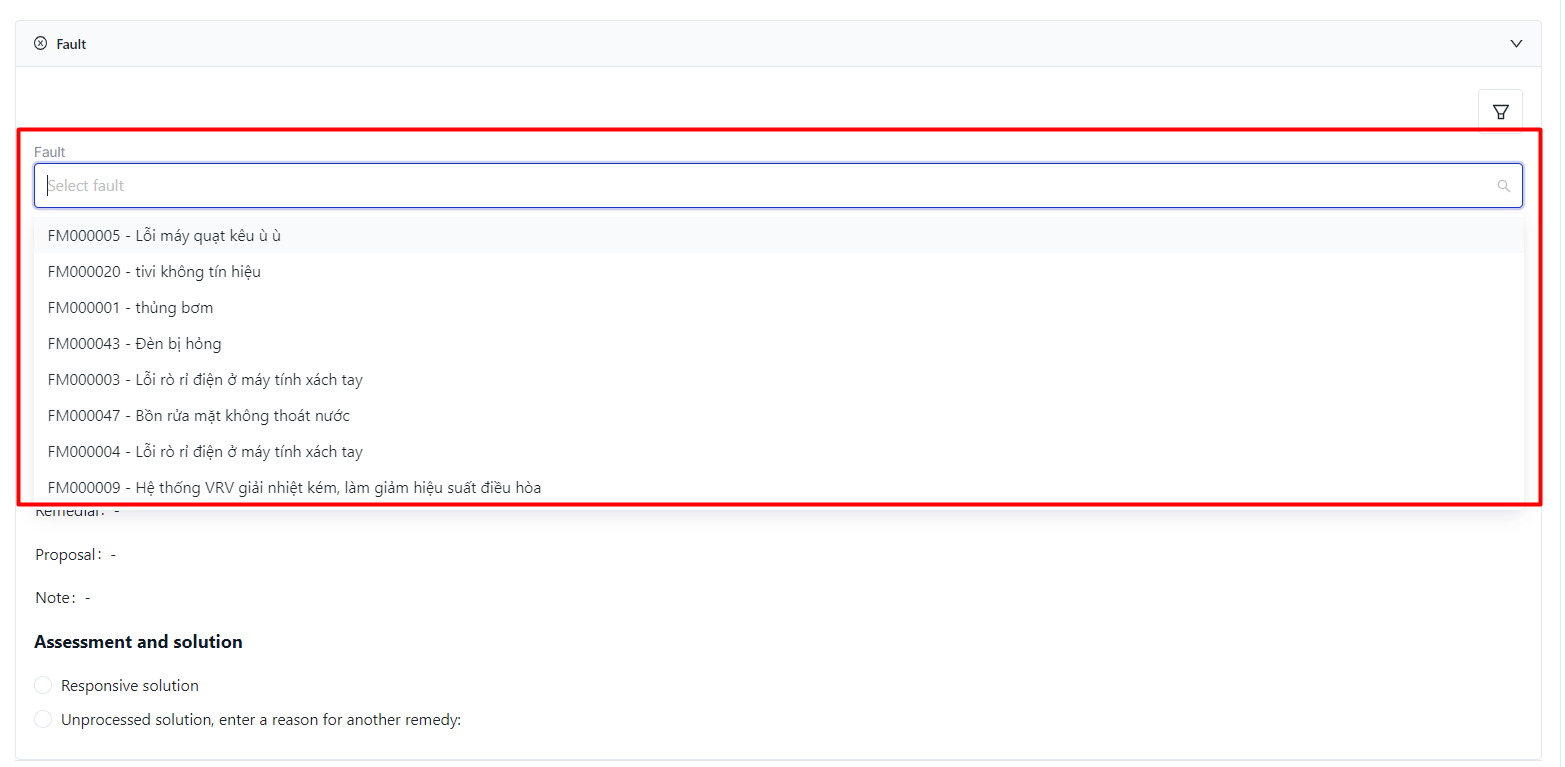 Classification: Often used for work related to asset repair by technicians to classify common errors encountered during the work process and help new employees to view and handle similar fault.