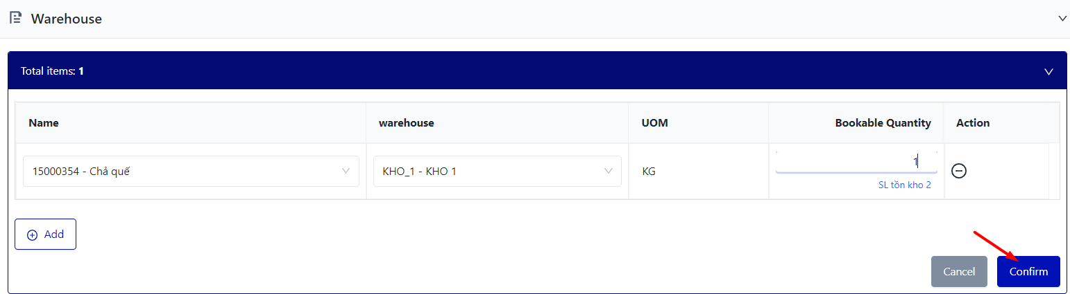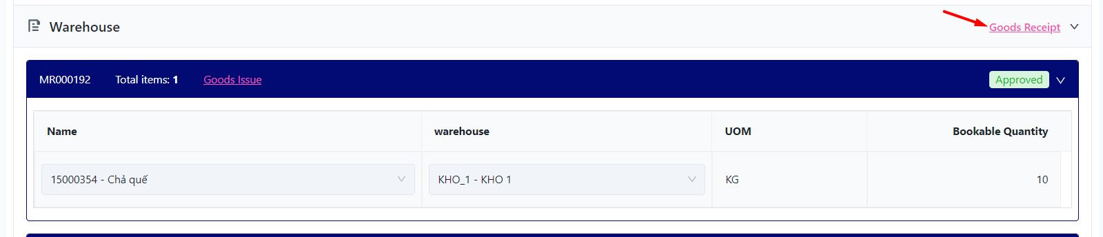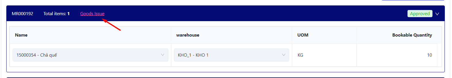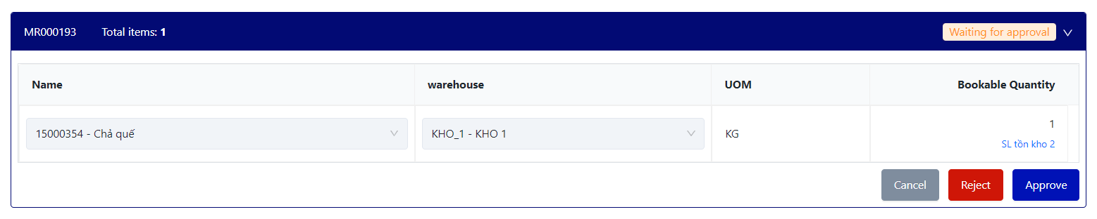 Material delivery request: Users create an export request by entering the material information and quantity needed (can select "Add material" if more than one type of material is needed) to submit for approval by the Department Head/Inventory Manager. The material delivery request may be rejected if not approved. After the material delivery request is approved, users proceed to take the materials and confirm that they have taken the items so the system can deduct the quantity of materials in the "inventory management".
