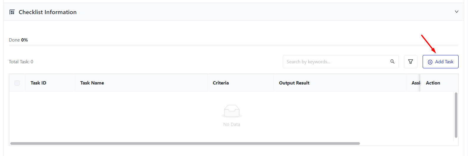 Checklist information: In case the task performer needs to create additional sub-tasks, the user selects "Add task" to create more sub-tasks and can assign them to others to perform these sub-tasks. Note that these sub-tasks must be completed before the parent task can be completed.