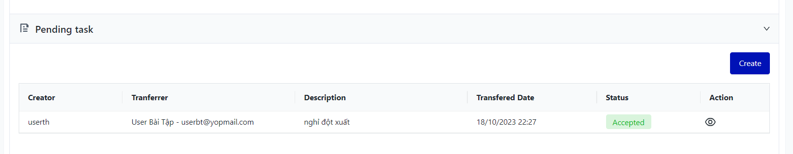 The old assignee selects the "Add Task" to create a request, then selects the new assignee and team leader. At this point, the task delivery note will be in the "Handover in progress" status.