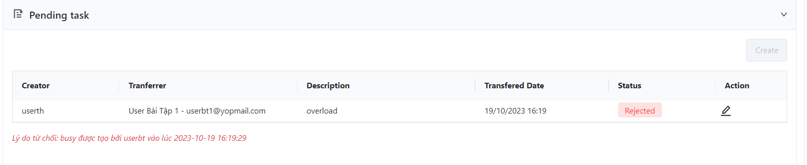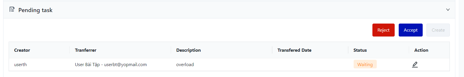 The new recipient confirms or rejects. After confirmation, the work order will be transferred to the new assignee. If "Rejected", the task delivery note will be transferred to the "Manager" to create a handover request for another person.