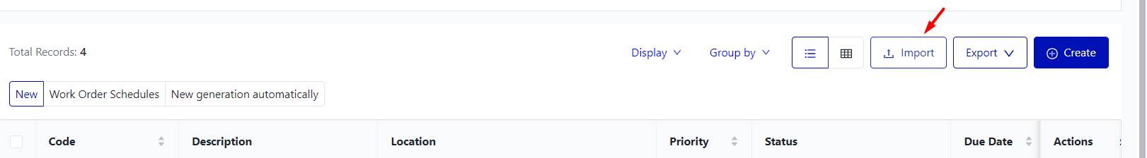 Then select "import" to get the import template to create multiple work orders to import and help create work orders quickly.
