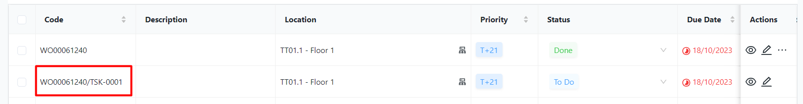 The sub-tasks will have a task code in the format of parent task code / asset TSK-00n.
