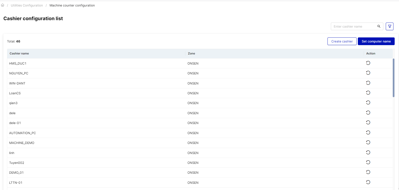 This screen allows users to configure employee computers to the corresponding counter, enabling them to perform various tasks at the counter. These tasks may include processing transactions, managing inventory, generating invoices, and providing customer service. |
