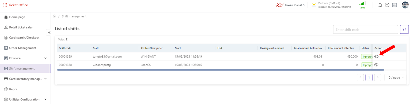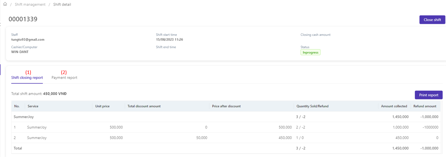 Shift management allows for the efficient management of employee work hours and shift revenue report. |