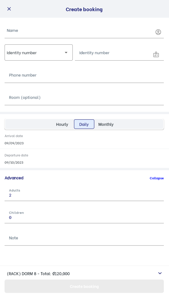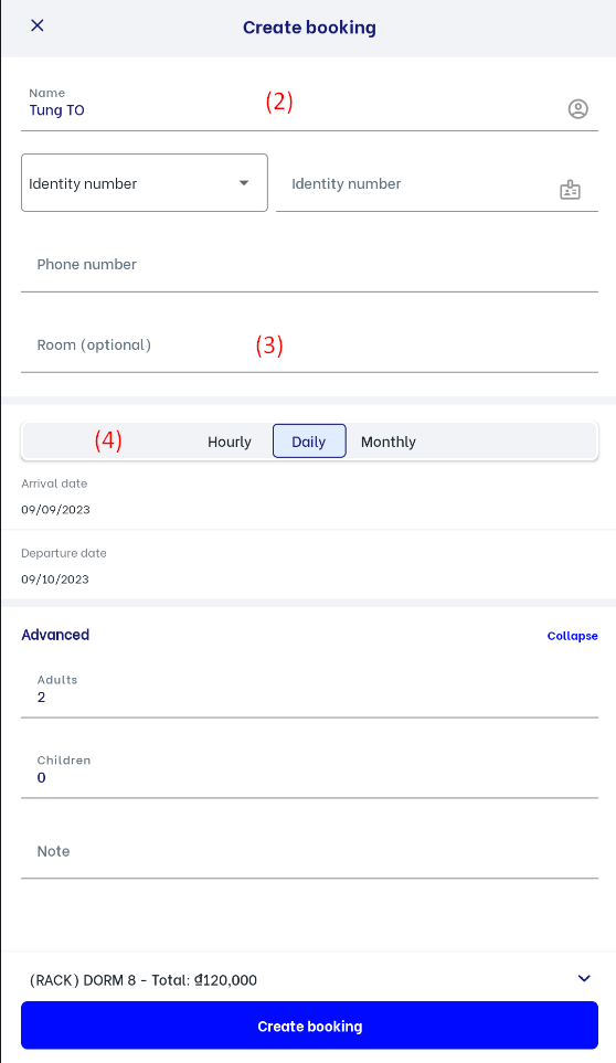 I. Do following steps to create a new booking: