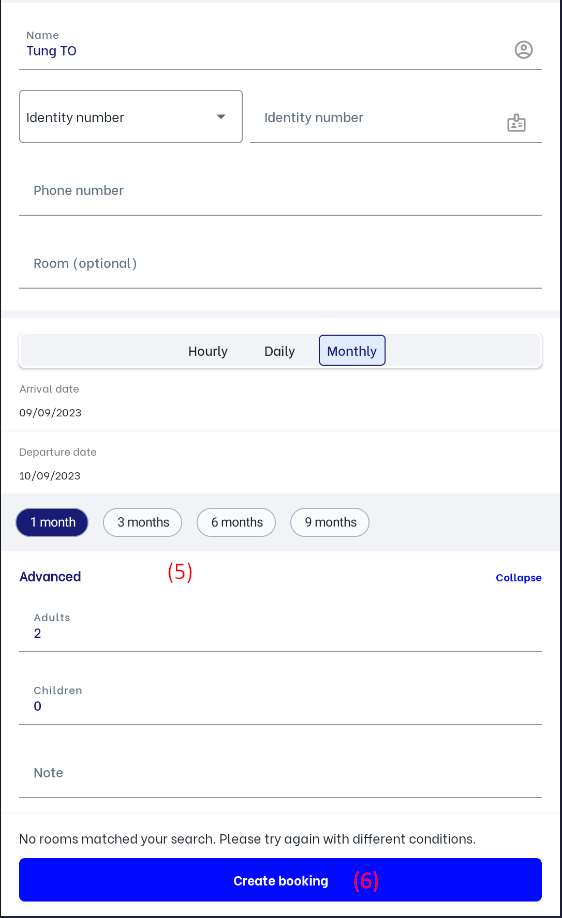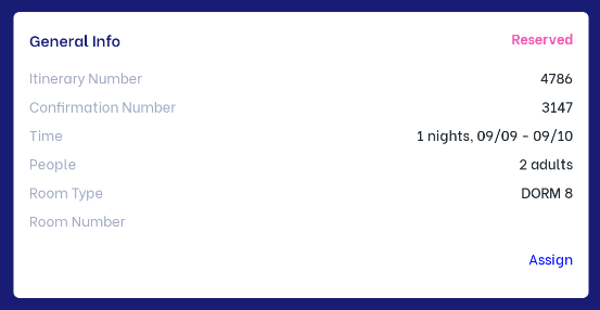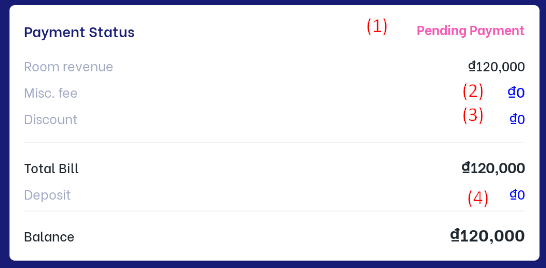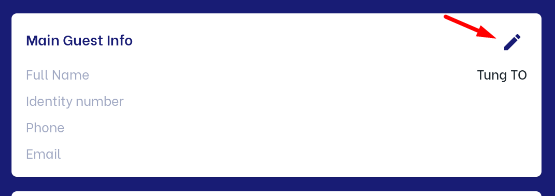 ![]() II. Details of reservation:(1) General info: Click on "Assign" to assign a room number for the reservation if it has a "Reserved" status ![]() (2) Main guest info: Users can change guest information by clicking on the icon :edit: to update guest name, ID, phone number, and email information. ![]() (3) Payment status: ![]()