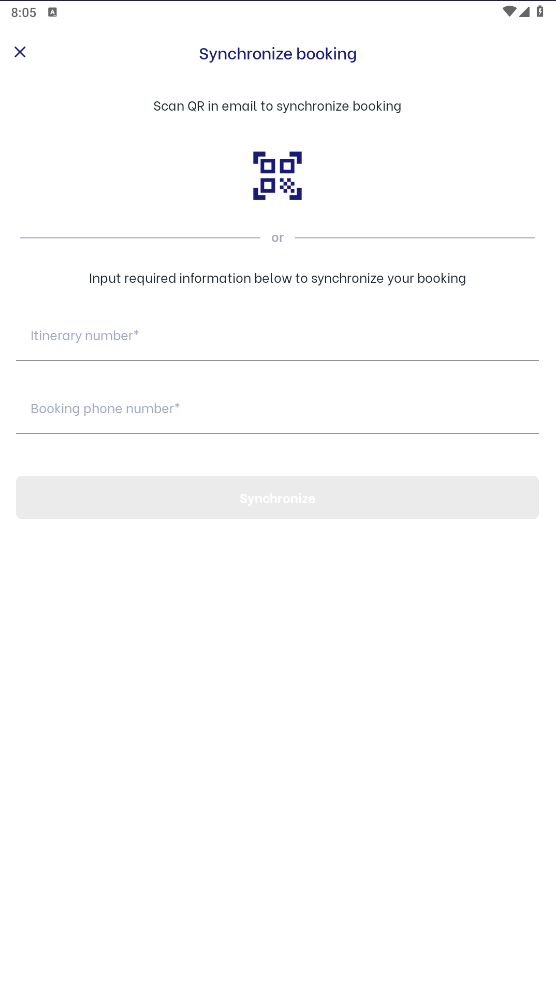 ![]() (1) Synchronize Booking: Use QR code or itinerary number and phone number to synchronize booking ![]() (2) Input Itinerary number: To search for your booking information (3) Managing itinerary information: