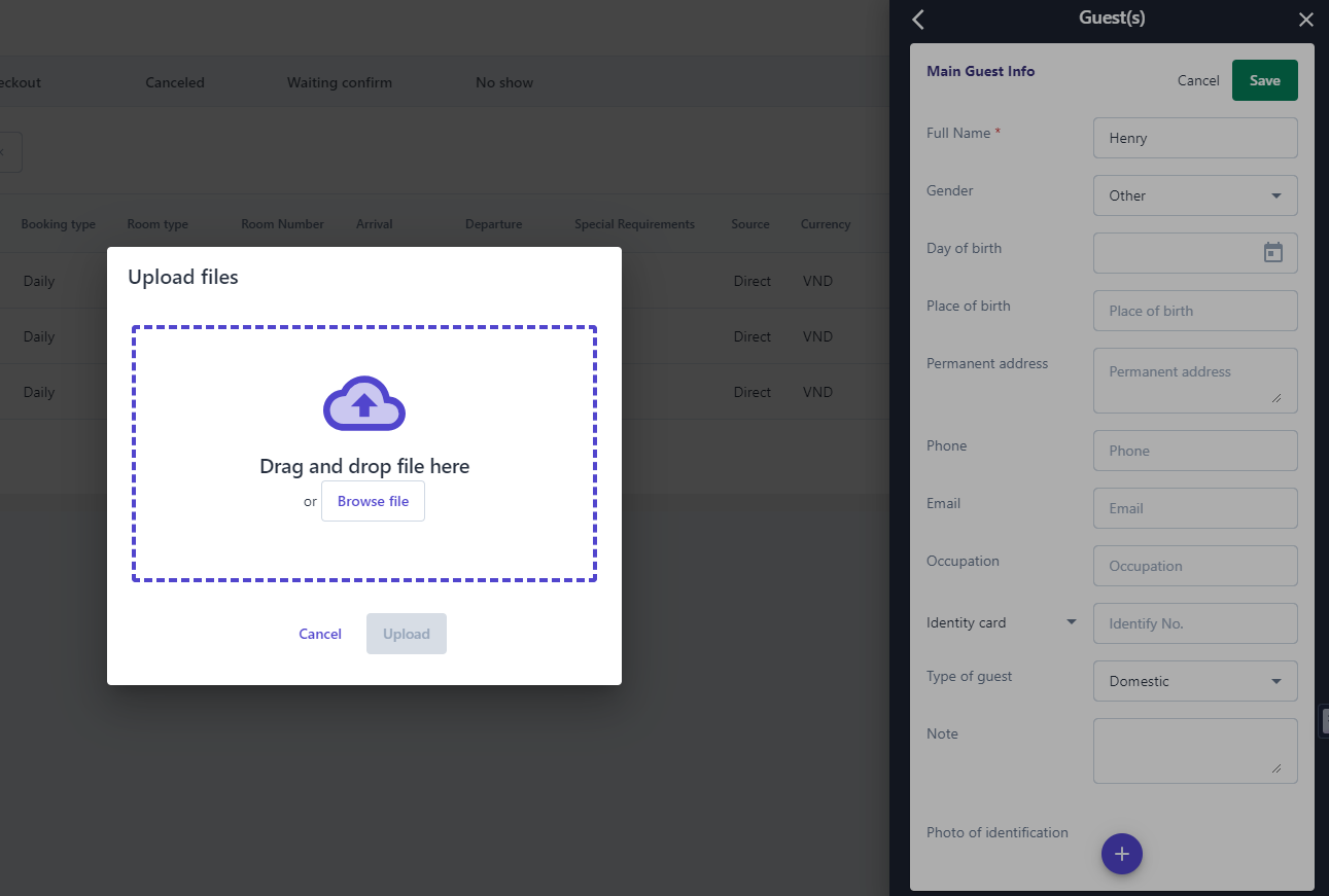 To perform the functions below, users need to access the details of a booking available on the system 1.Guest(s)