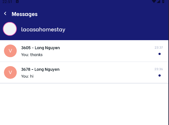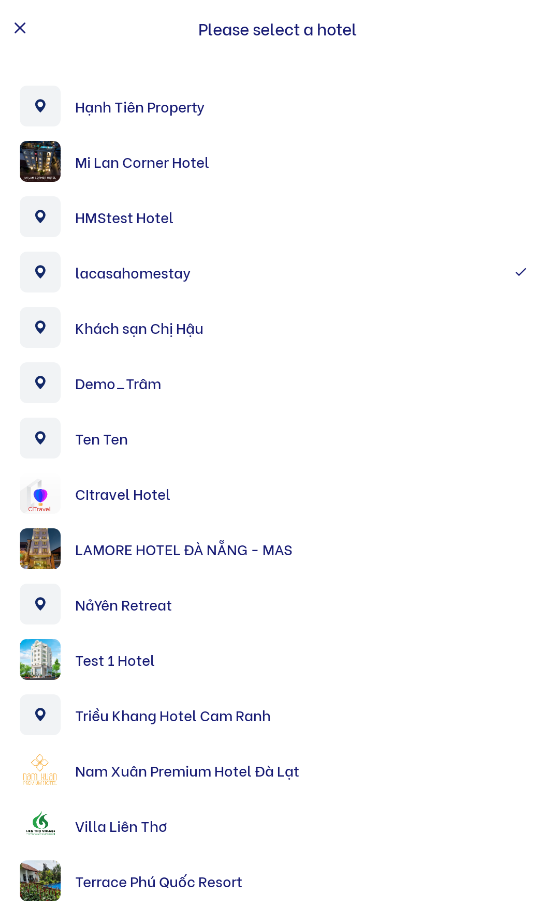 (4) MessagesDisplay and manage all messages from customers to hotel owners during their stay at the hotel. ![]() (5) App Settings![]() (1) Turn on/off the button to enable/disable the feature that allows customers to message the hotel through the app (2) Click on Language to switch to Vietnamese/English |