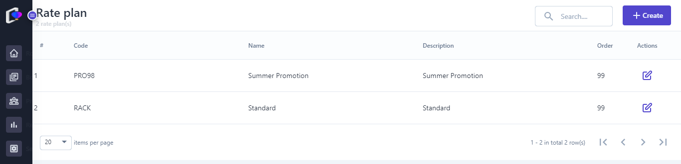 The system allows managing all pricing strategies (rate plan) of the hotel. |
