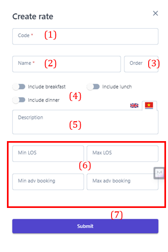 ![]() (1) Search: user can search by Rate name/code (2) Create: ![]()