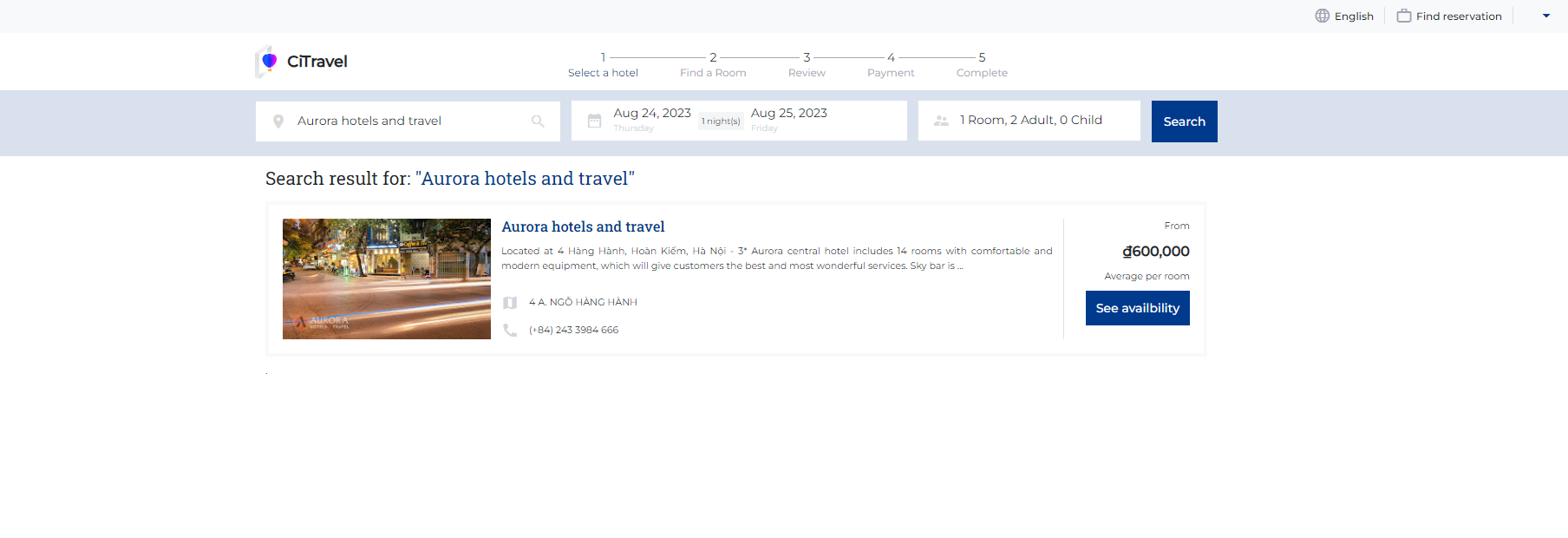 Allow users search and book hotel rooms on the CiTravel system |