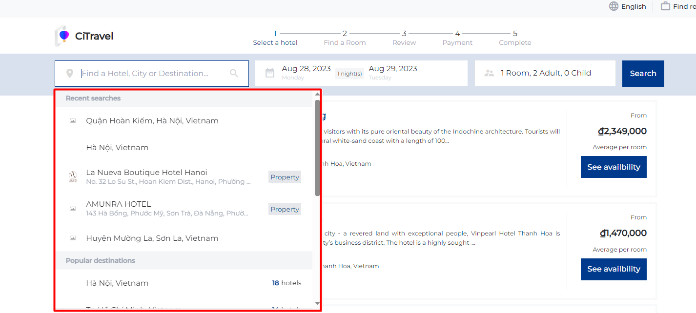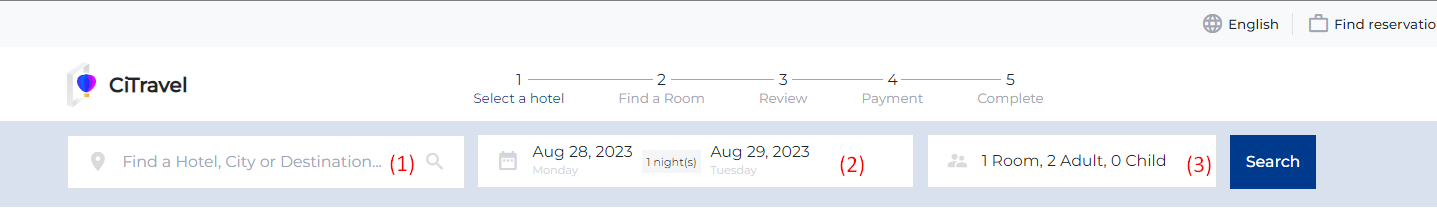 I. Filter and search for Hotel, City or Destination information![]() (1) Enter the information you want to search for in the search box to find the destination and hotel that the user plans to book. ![]()