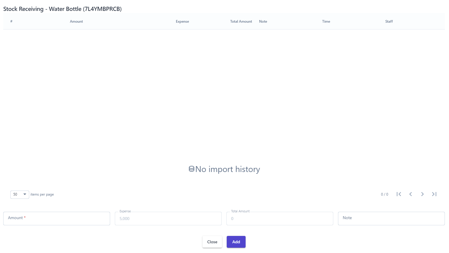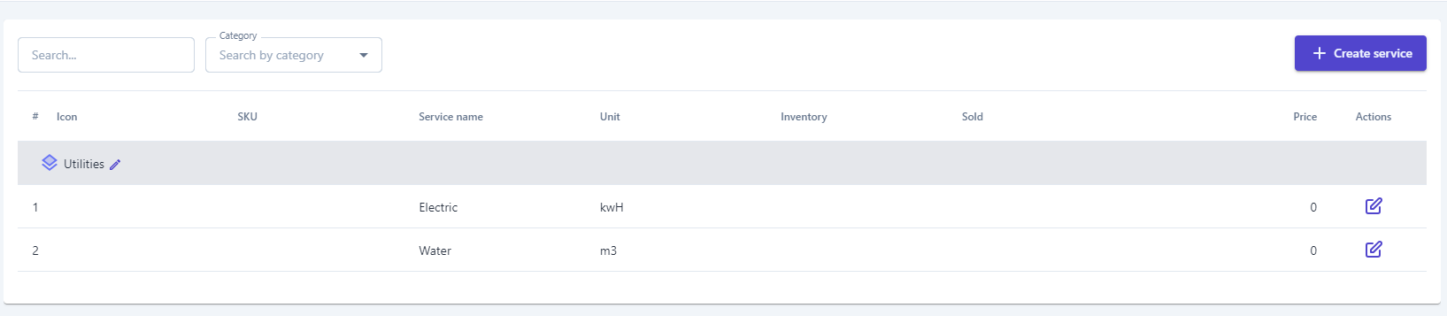 (4) Edit Category: Select :edit:to update category name (5) Adjust the inventory quantity of the service:: Select the icon :thêm:to adjust the inventory quantity. ![]() The system will display the entire inventory history of the service on the screen above. (6) Edit Service: Performed when users need to change information such as service name, cost, or selling price. (7) Delete Service |