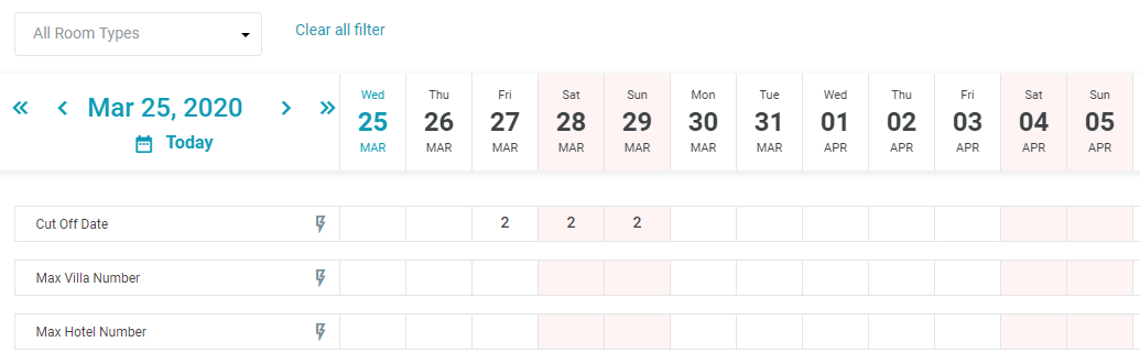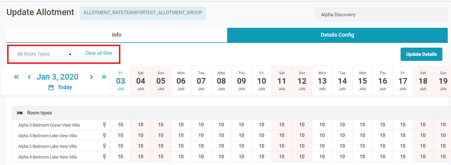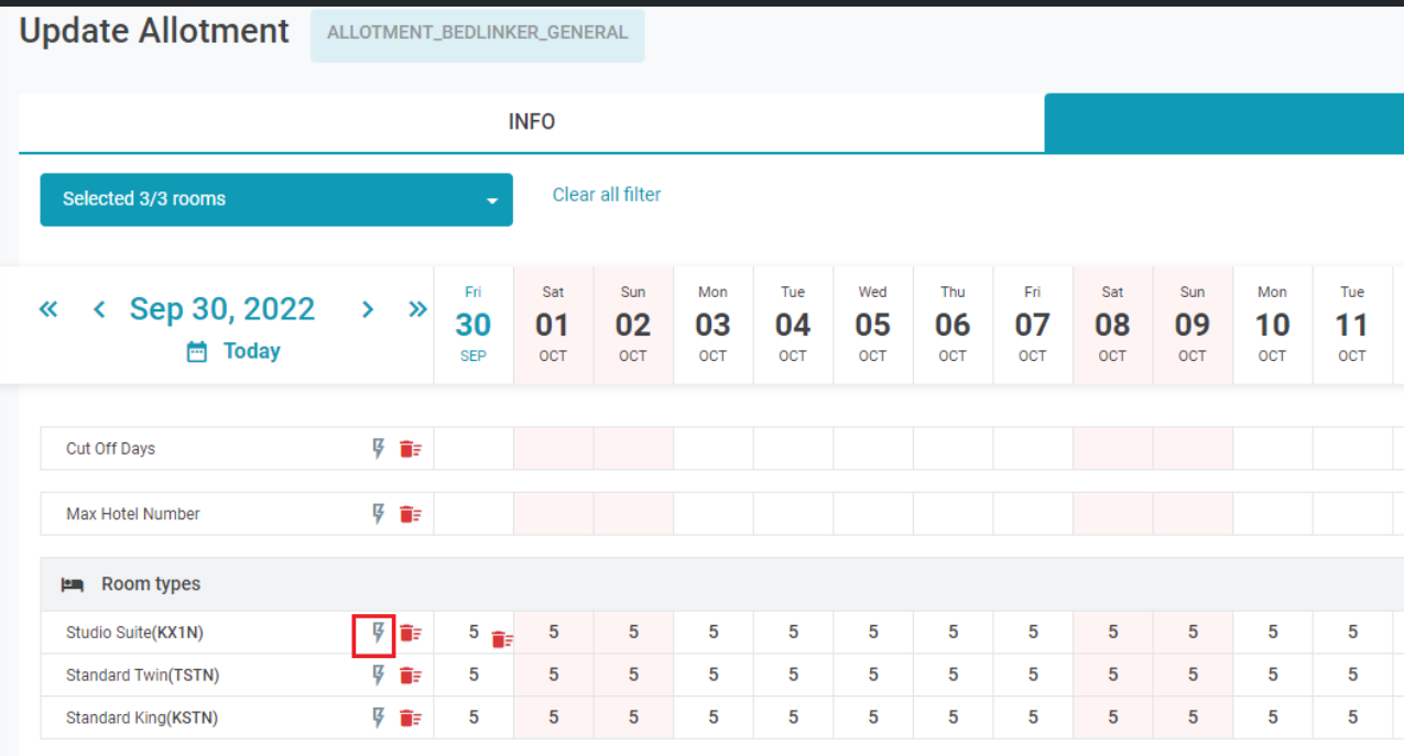 ![]() 4.4. Quick update detail of the allotment DC Select the Quick Update icon after the room type to update the details. ![]() 4.5. Filters